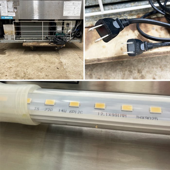 <仕様> 商 品 名 :冷蔵ショーケース メーカー:大和冷機 ダイワ 型 番:TCR401-EC 年 式:2018年 寸 法:約 幅 1200mm × 奥行 750mm × 高さ 1130mm 重 量:約 222kg 電 源:100V 50/60Hz 付 属 品 :※写真に掲載されているものが全てとなります。 <動作確認> ・2℃設定で2℃まで下がった事を確認しました。(外気温27℃) ・照明が点灯する事を確認しました。 ※LED等の消耗品は初期不良の対応対象外です。 <状態> ・キズ、汚れ、サビ等があります。 |