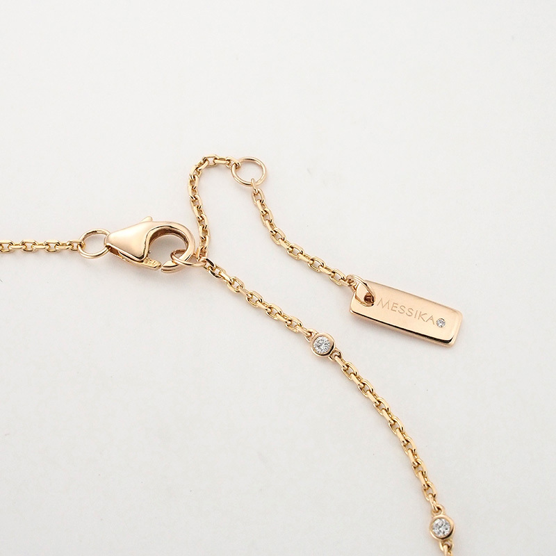 | サイズ | 全長 約18.5cm(金具含む) 内周 約17.5cm(アジャスター1.5cm×2) チェーン幅 約1mm モチーフ 約13.4×5mm 重量 3.4g |