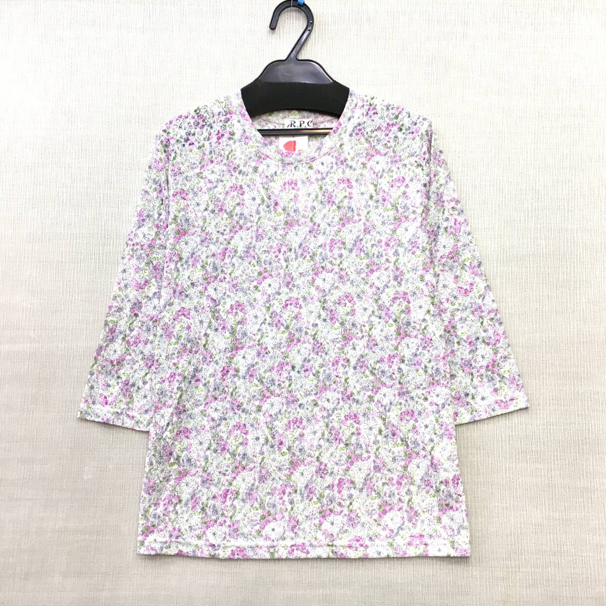 【新品】涼感素材 日本製 7分袖 綿混 カットソー 送料無料 やわらか素材 エリ開き 小さめ 婦人 レディース Tシャツ ピンク系 小花柄