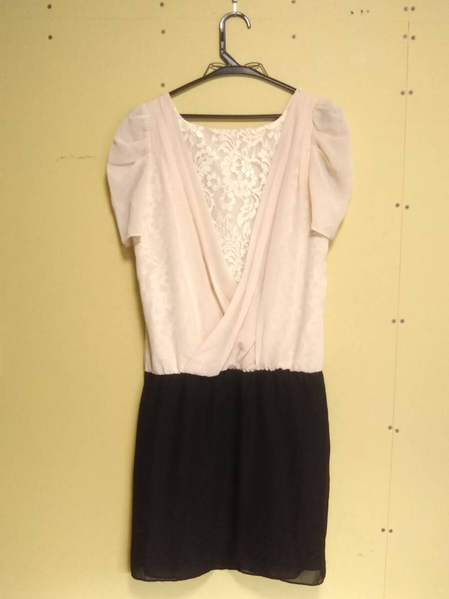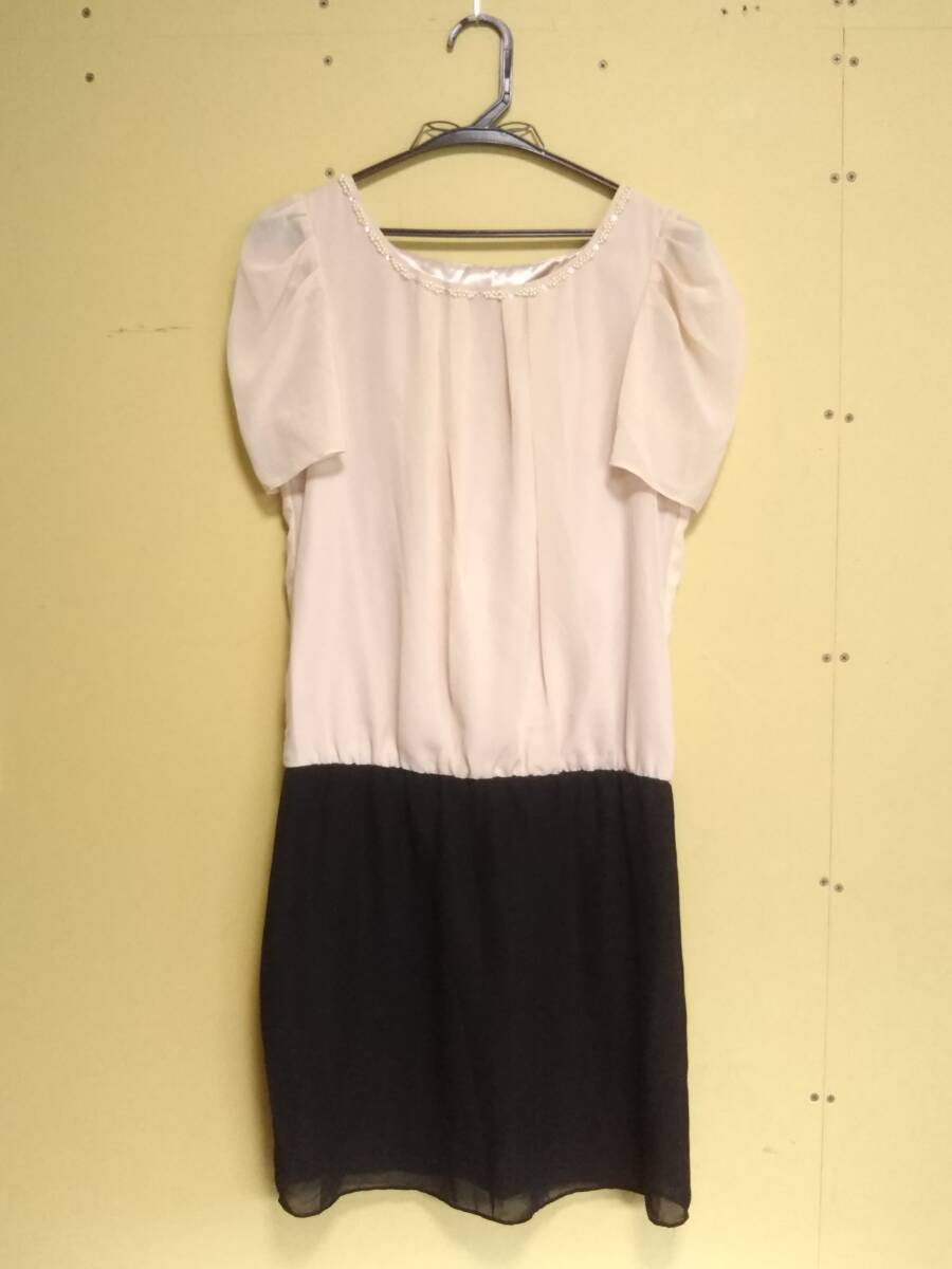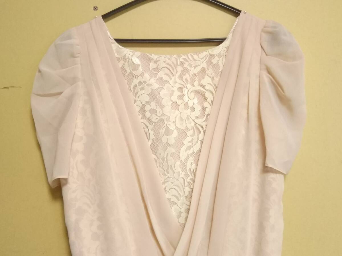 ★JUSGLITTY ジャスグリッティー フォーマルワンピース サイズ2 M 半袖 ツートン 切り替え レース ひざ丈 ピンク