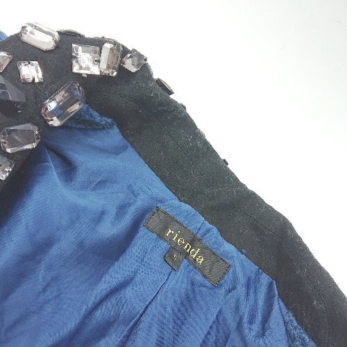 ◇ ⊇ rienda リエンダ ビジュー装飾 長袖 ジャケット サイズS ブルー系 レディース E