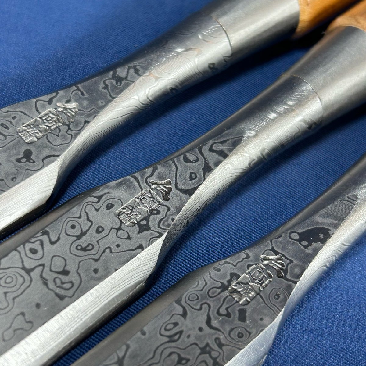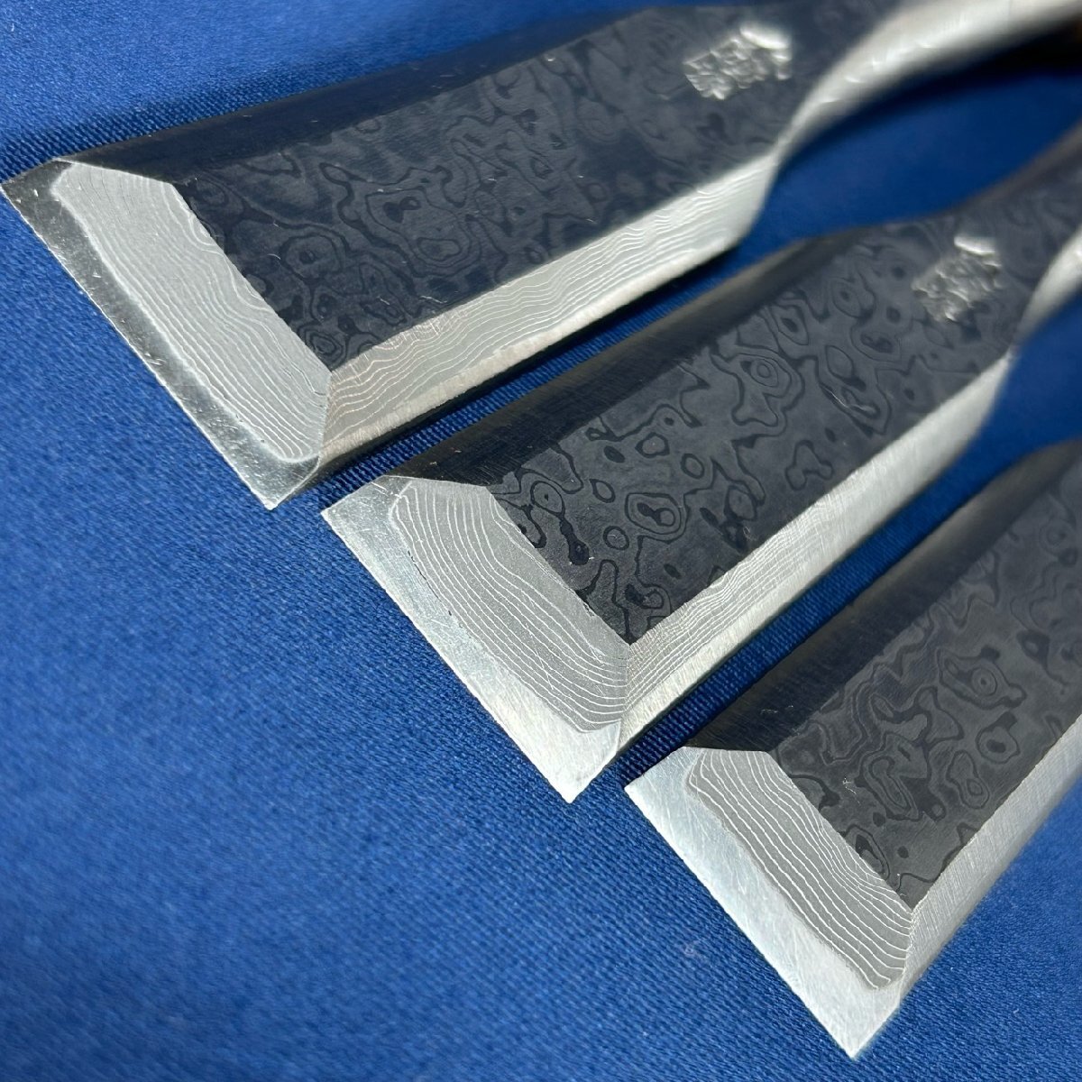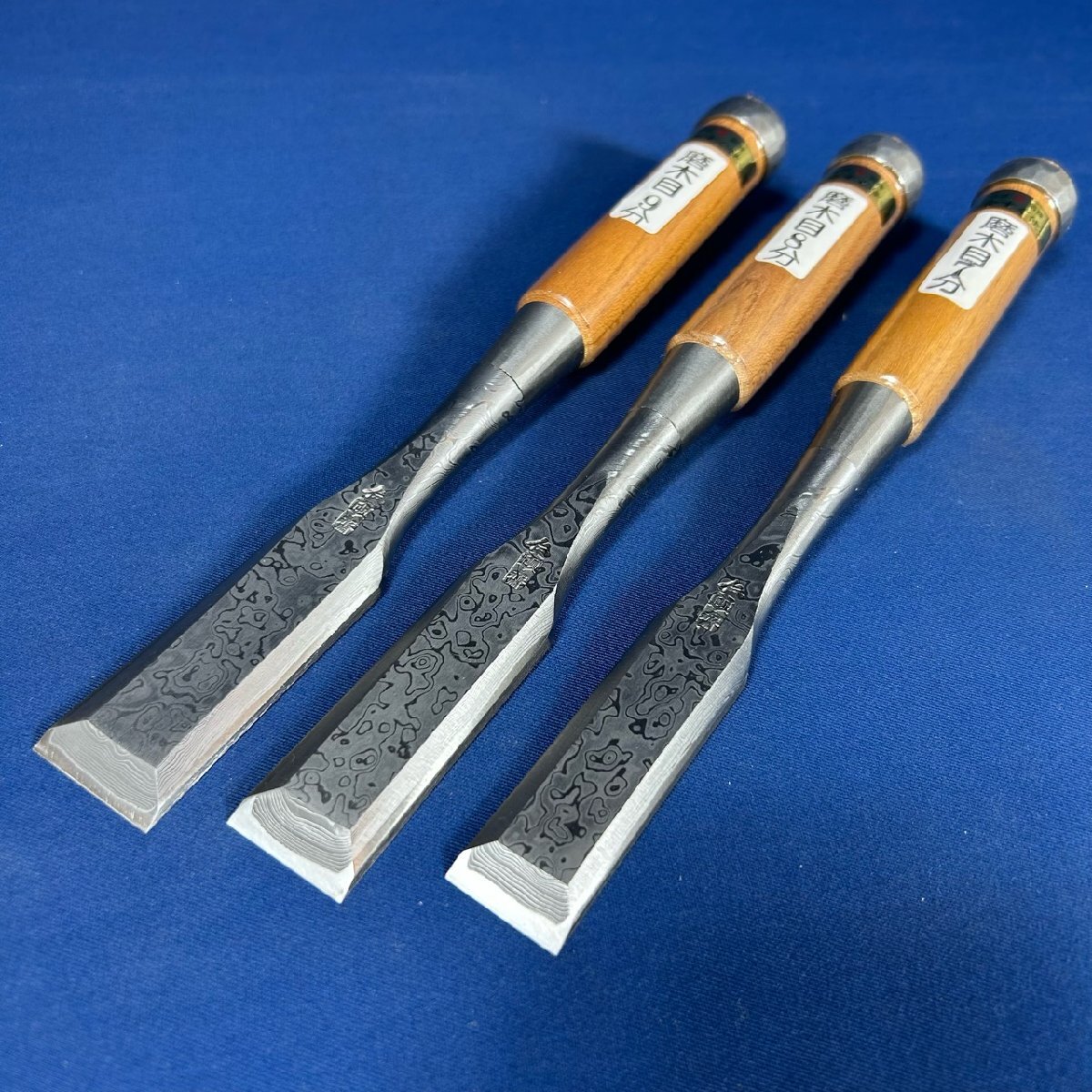 ◆明夫氏が中々製作しない『磨き木目 脇差し鑿』の3本組です。
