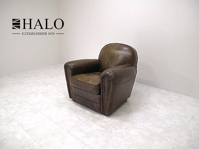 英国 HALO ハロ FLEAMARKET フリーマーケット 総革 1人掛けソファ 高品質ヴィンテージ加工 本革ソファ