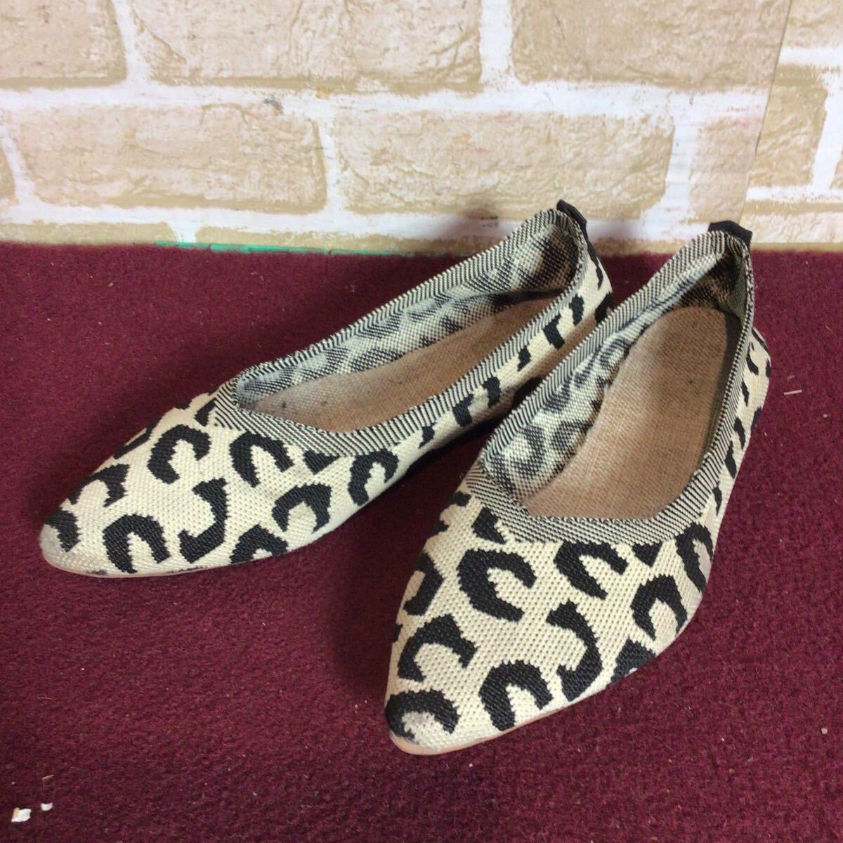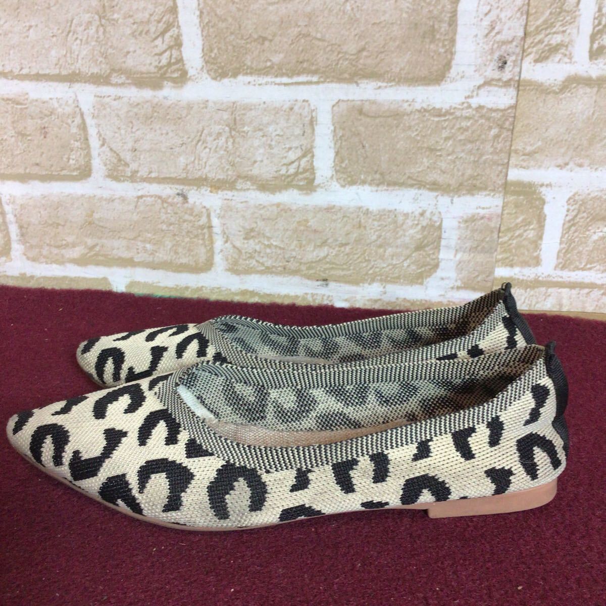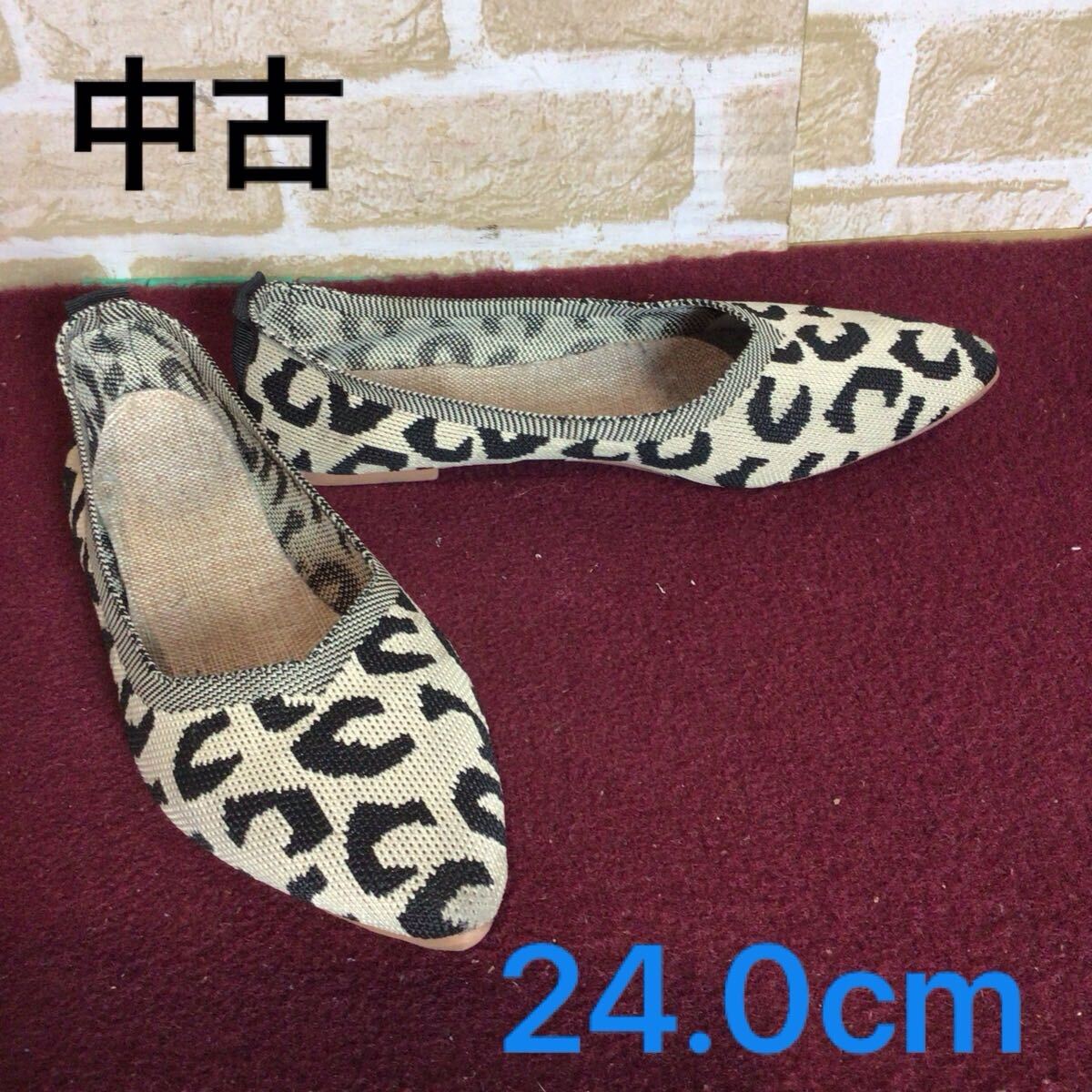 【売り切り!送料無料!】A-321 ニットパンプス!24.0cm!豹柄!ベージュ!!おしゃれ!ぺたんこ!歩きやすい!!中古!