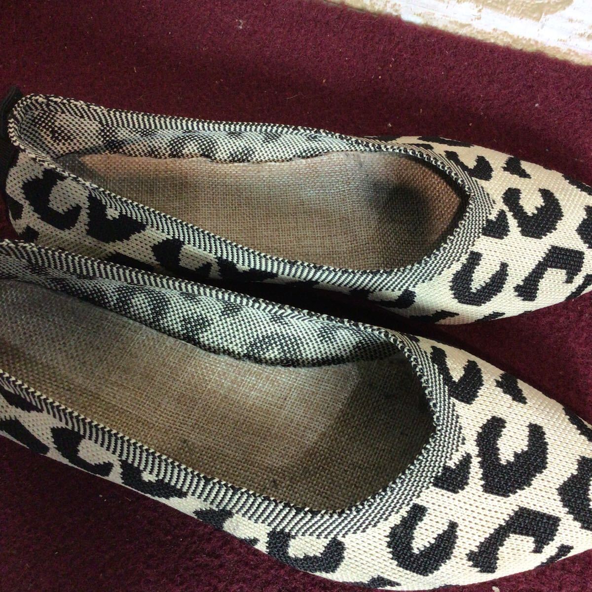 豹柄のぺたんこパンプスで、ニットのような柔らかい素材となっております。