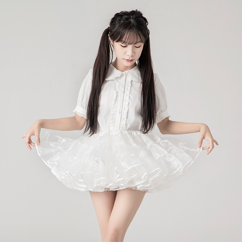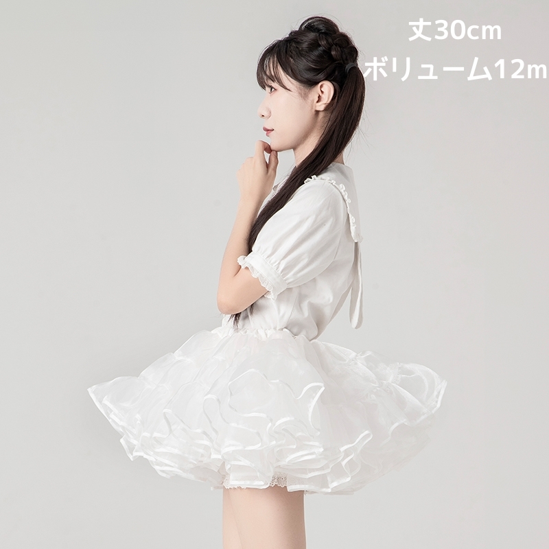 ボリューム パニエ 30cm丈 ロリータ ミニ丈 ショート丈 フリル チュチュ スカート 超ミニ ゴスロリ 甘ロリ コスプレ 文化祭 学園祭 オーガンジー 華やか ボリュームアップ メイド服 ダンス衣装 ステージ衣装 イベント 仮装 ハロウィン 白 黒 ホワイト ブラック