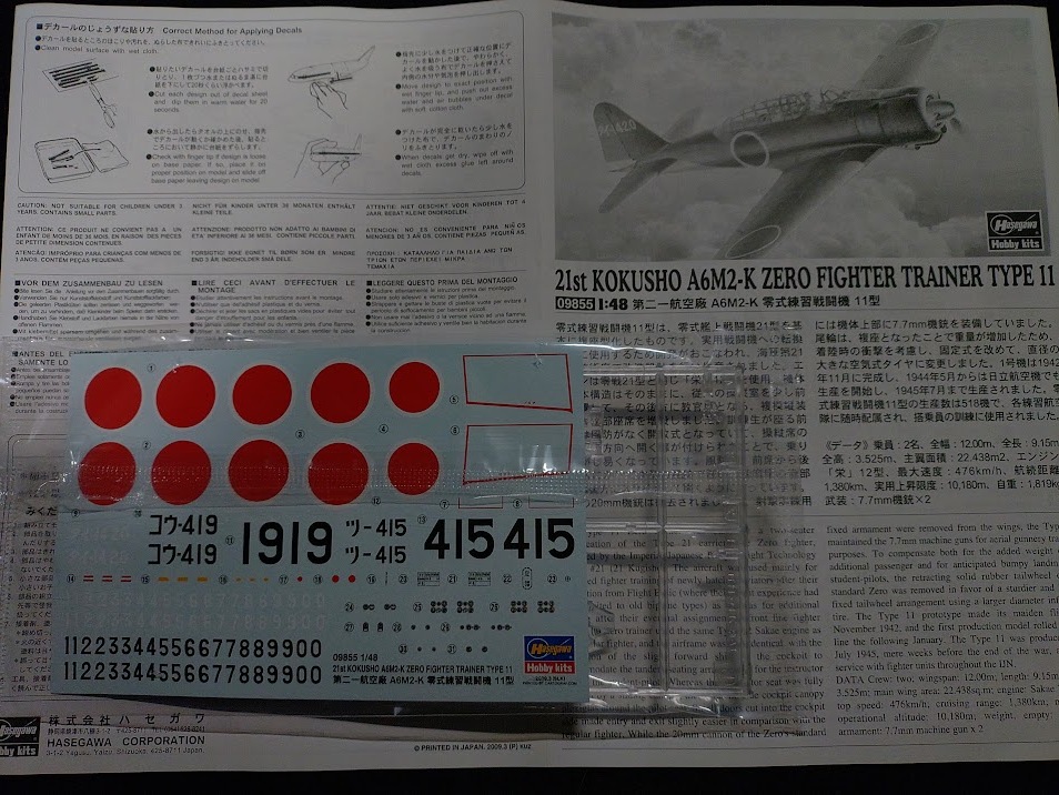 第二一航空廠A6M2-K 零式練習戦闘機11型  1/48 ハセガワ09855