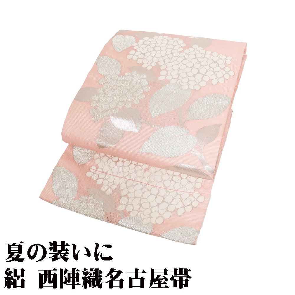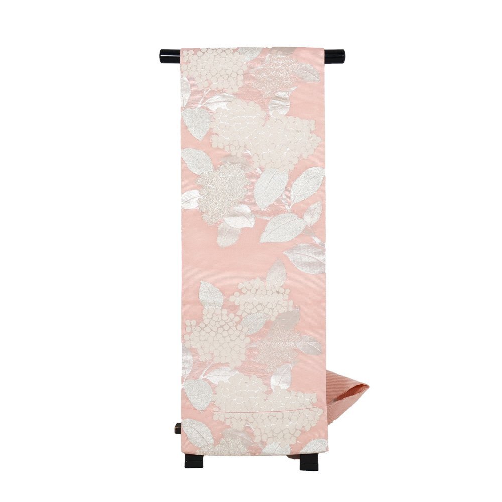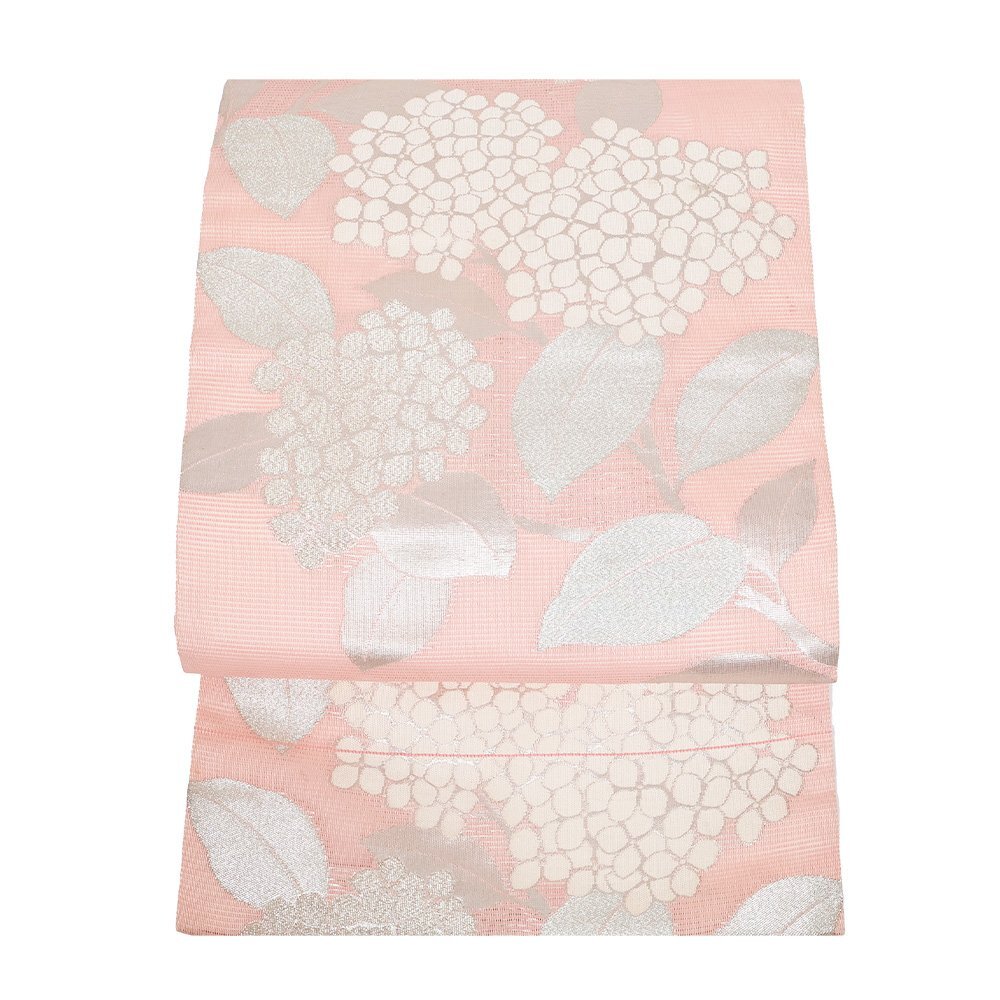 | 紗 西陣織名古屋帯 ピンク・銀箔地 紫陽花 仕立て上がり | |