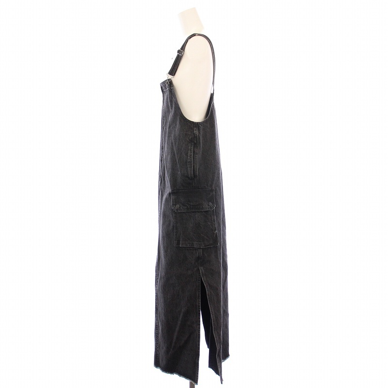 スピック&スパン Spick&Span 5 1/2 ジャンパースカート デニムワンピース マキシ ロング サイドスリット フロントファスナー 38 黒