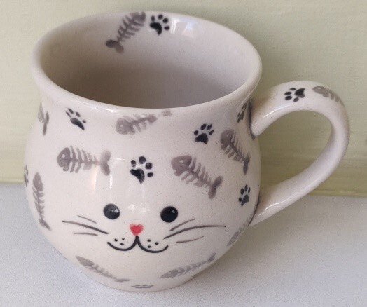 x854 ポーランド陶器 バブルマグ0.25L ネコ/足跡/骨 ポーリッシュポタリー 食器