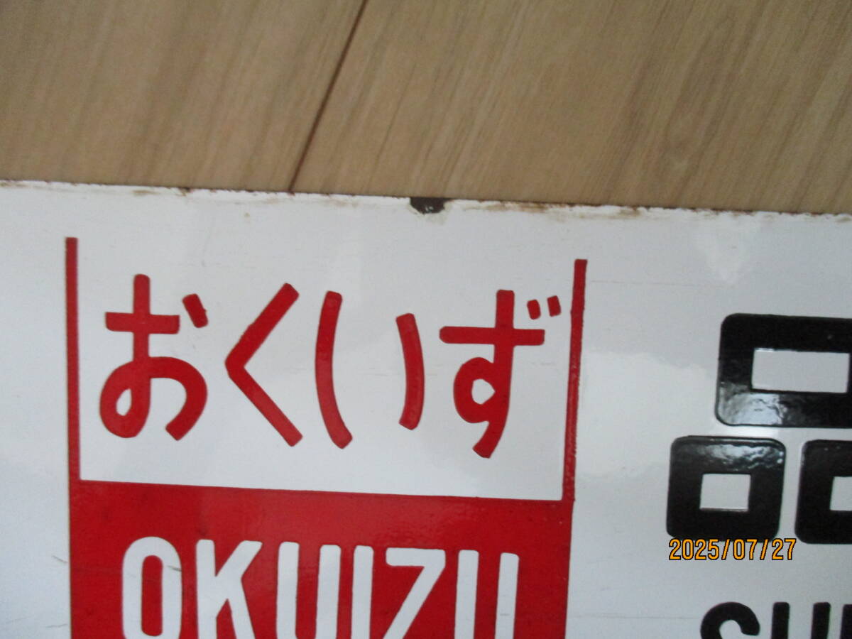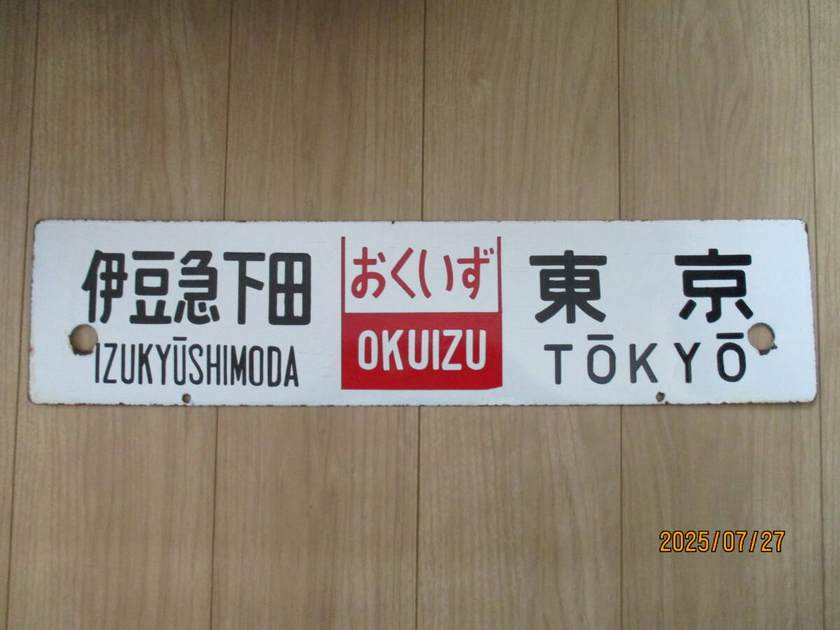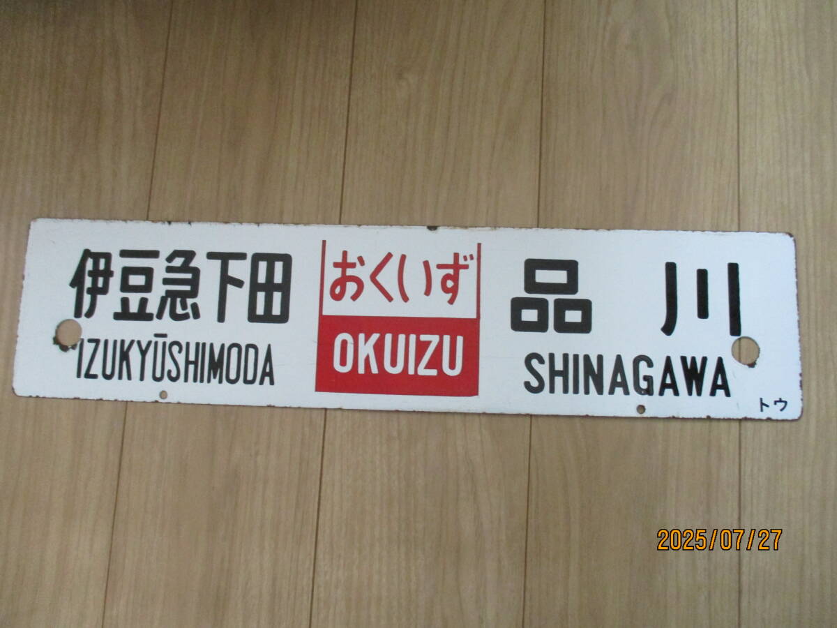 東海道線で運転されていた急行おくいず号のサボになります。伊豆急下田/東京と伊豆急下田/品川の裏表1枚になります。