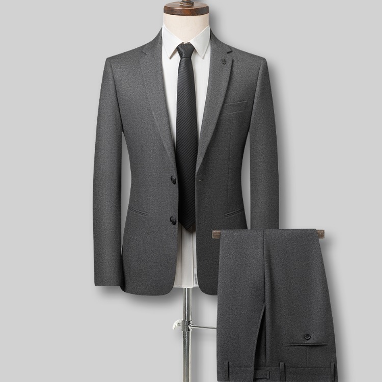 P740-L 新品 ウール混 セットアップスーツ メンズ 秋冬 厚手 ビジネススーツ 上下セット フォーマル ウエスト調節可能 スラックス/グレー