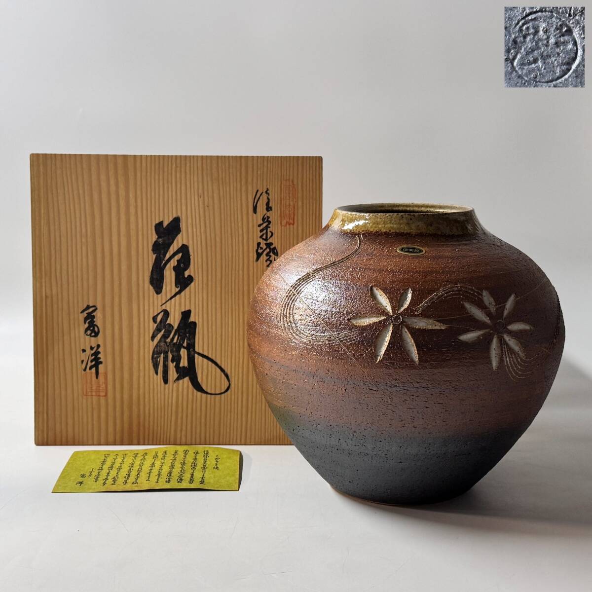 未使用 信楽焼 風流 富洋 花瓶 花器 花入 花生 華道具 茶道具 共箱 栞 経年保管品 現状品の出品です。