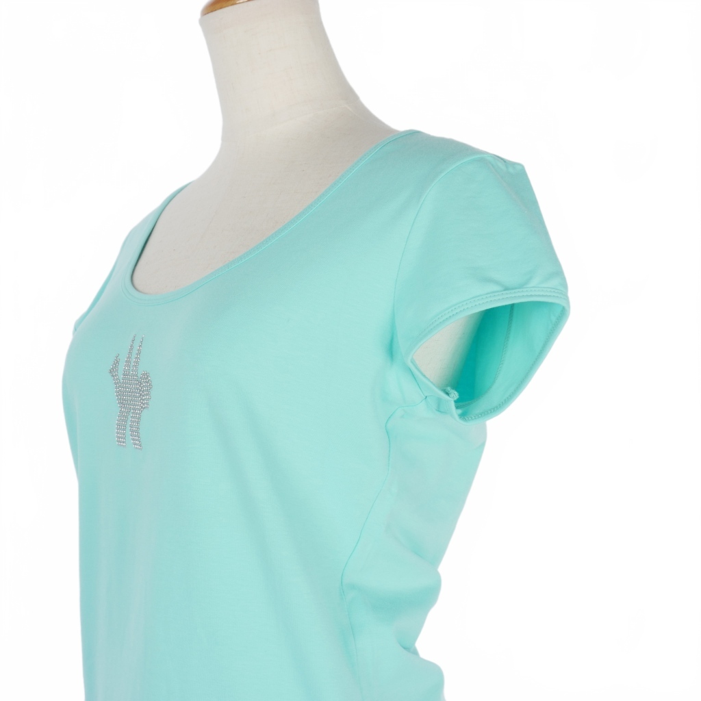 モンクレール MONCLER ラインストーン ロゴ Tシャツ カットソー ストレッチ 半袖 M ライトブルー 青 910-094-80731-50 国内正規
