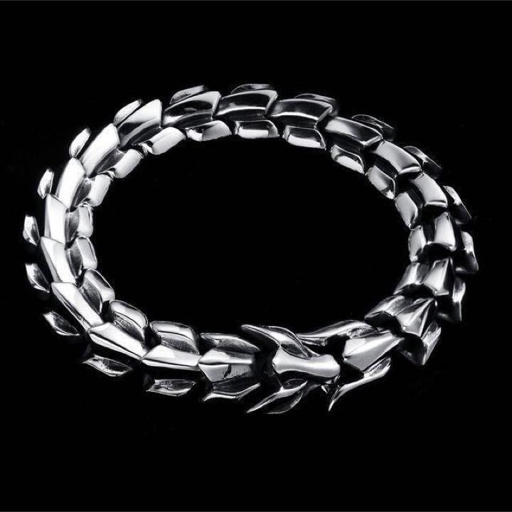 ドラゴンブレスレット 登り龍 竜 太め シルバー