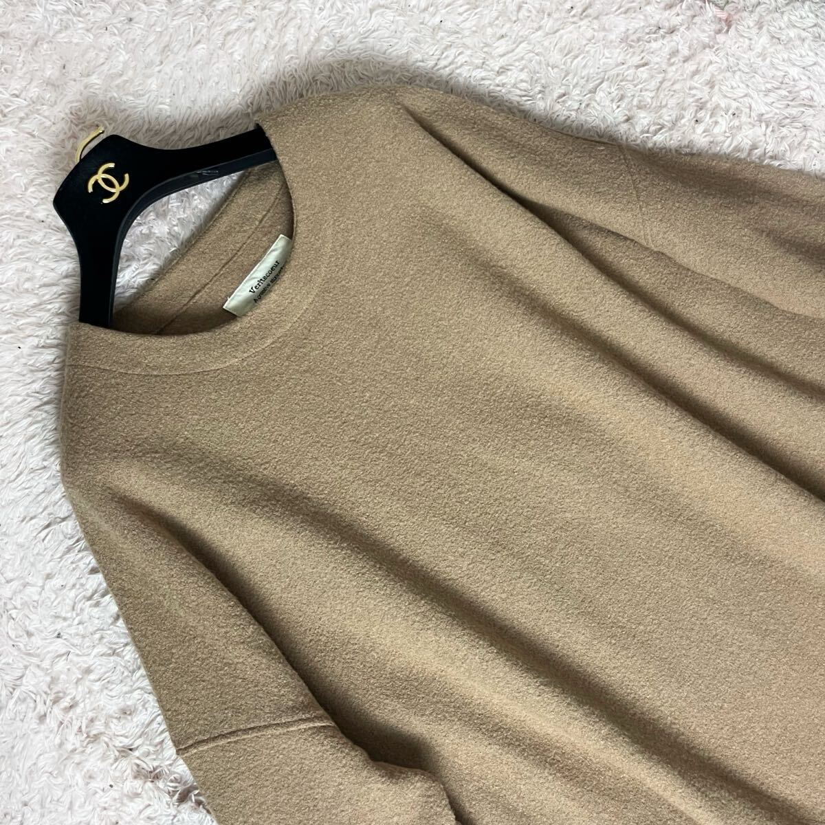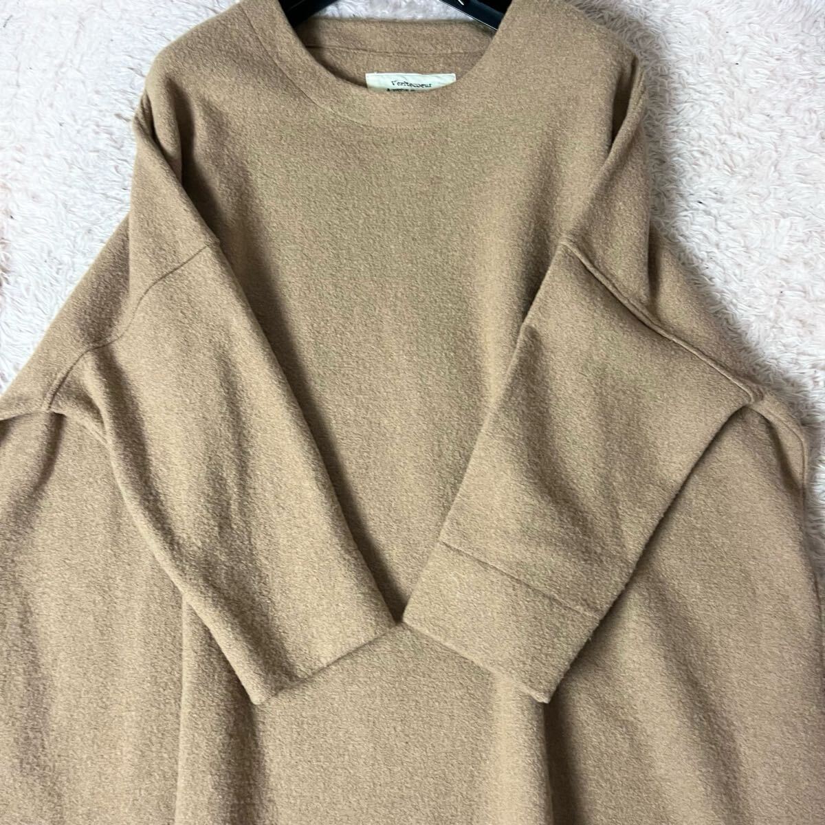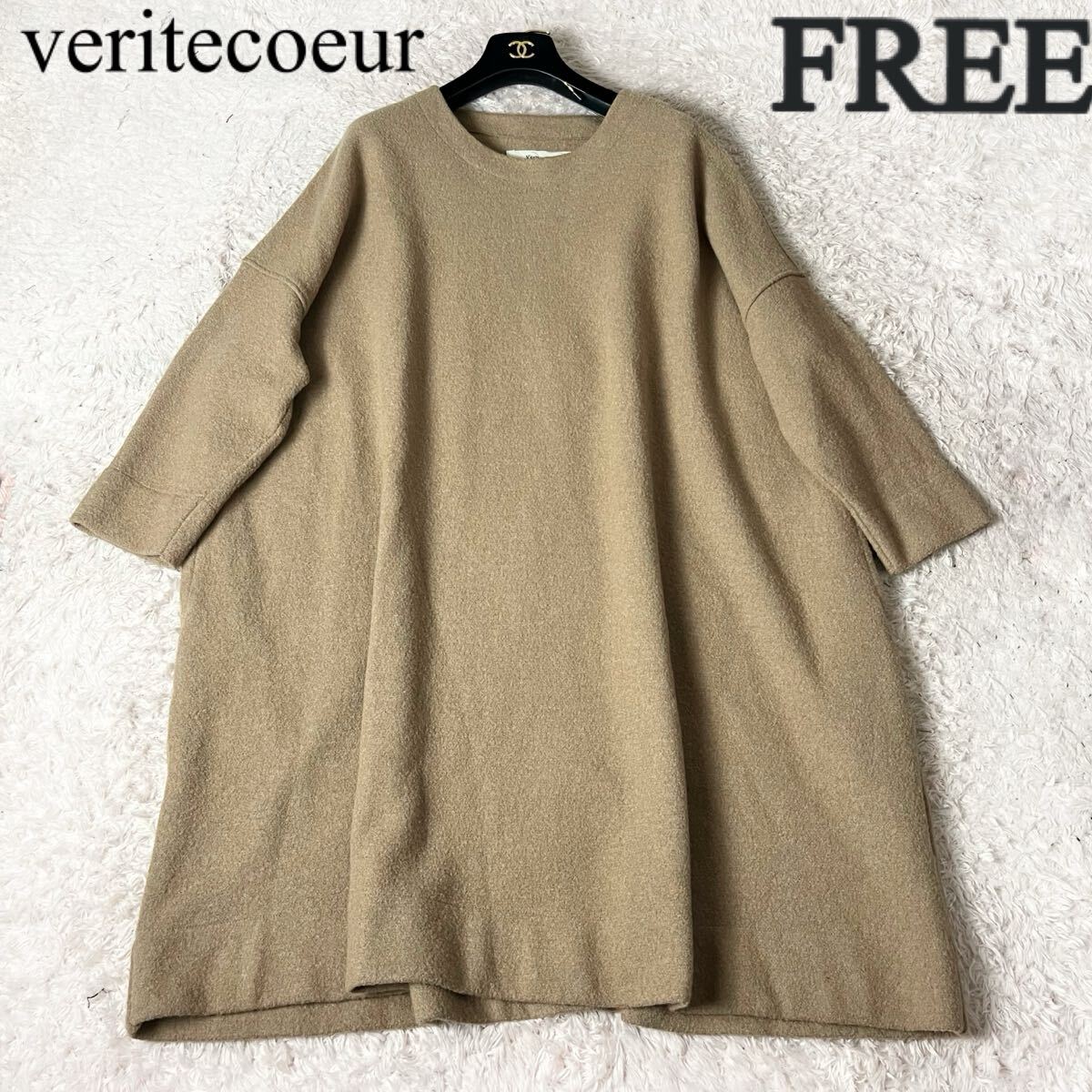veritecoeur ヴェリテクール ウール ニットワンピース オーバーサイズ オーバーシルエット 膝丈 フレア Aライン ベージュ フリーサイズ