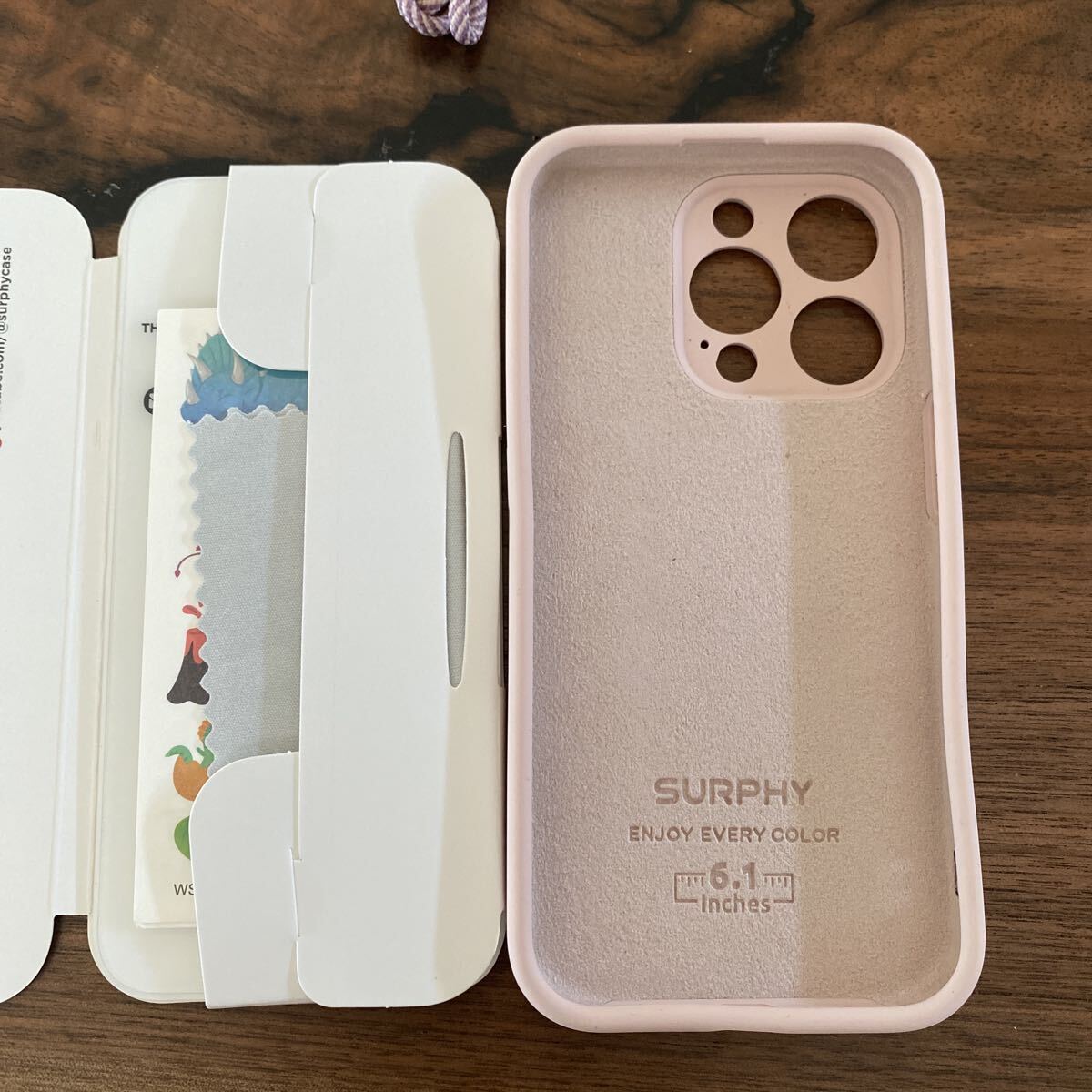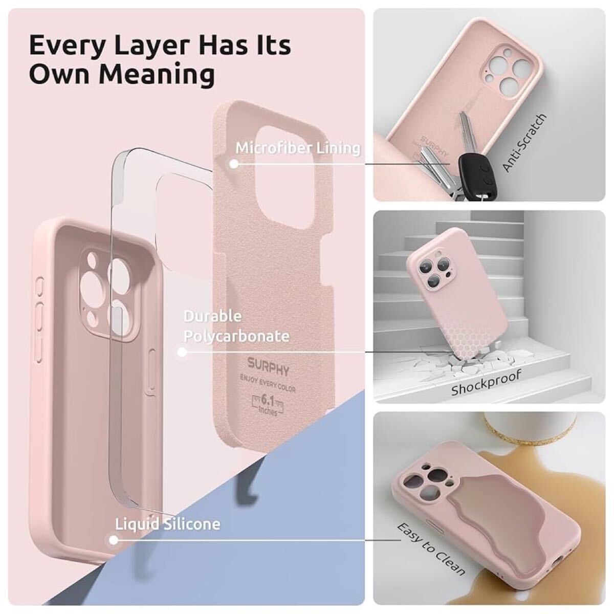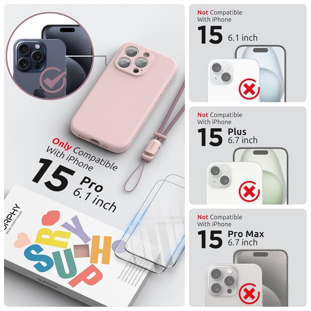 SURPHY iPhone15 pro用ケース シリコン,フィルム付き ストラップ付き 6.1インチ対応(2023) 携帯ケース iPhone15プロ(カメラの全面保護) 耐衝撃 超軽量 指紋防止 全面保護 iPhone15 pro用ソフトカバー (ピンク)