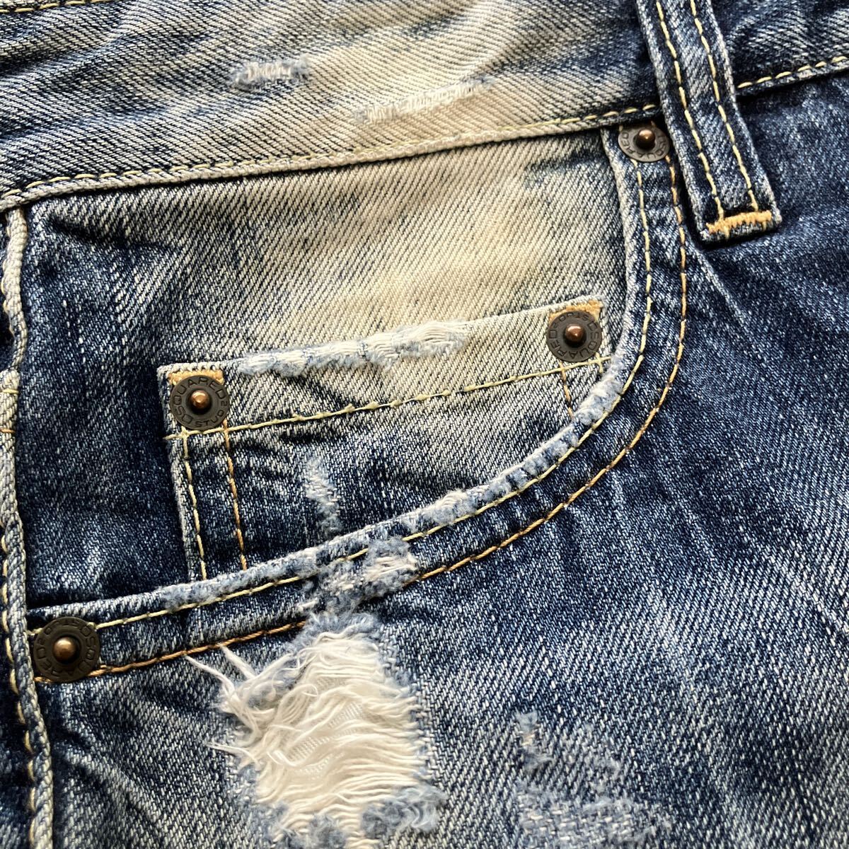 激しいダメージ加工ですが、日焼けした肌で海やプールに履いて行くと、それなりにカッコいいデニムです♪