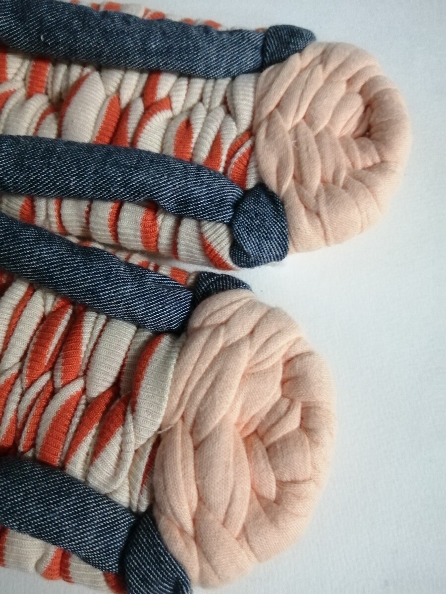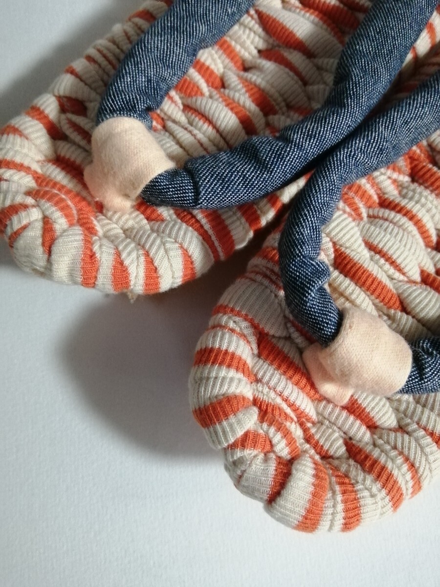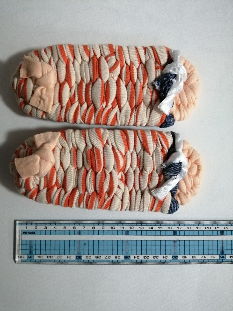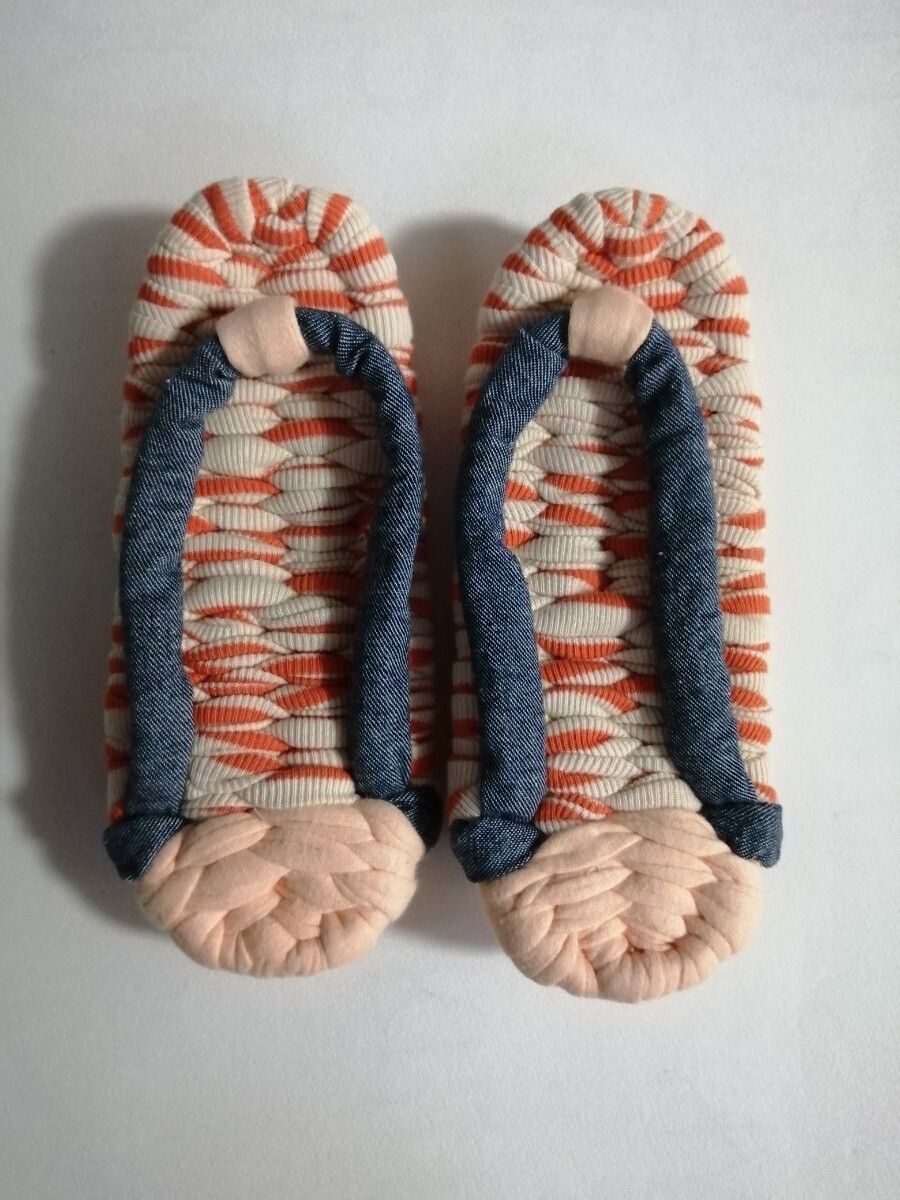 ●リサイクル布(Tシャツ 他)を使用した手作りの布ぞうりです。