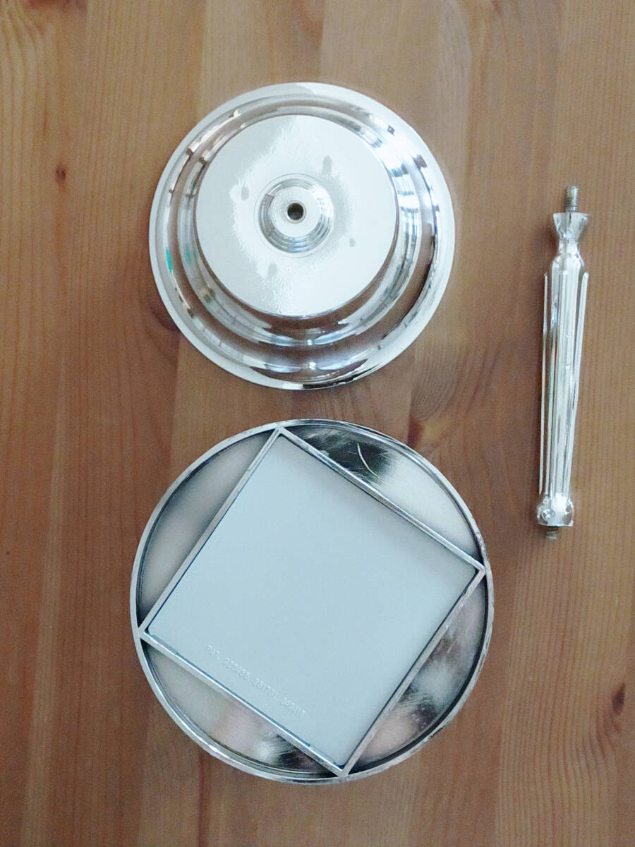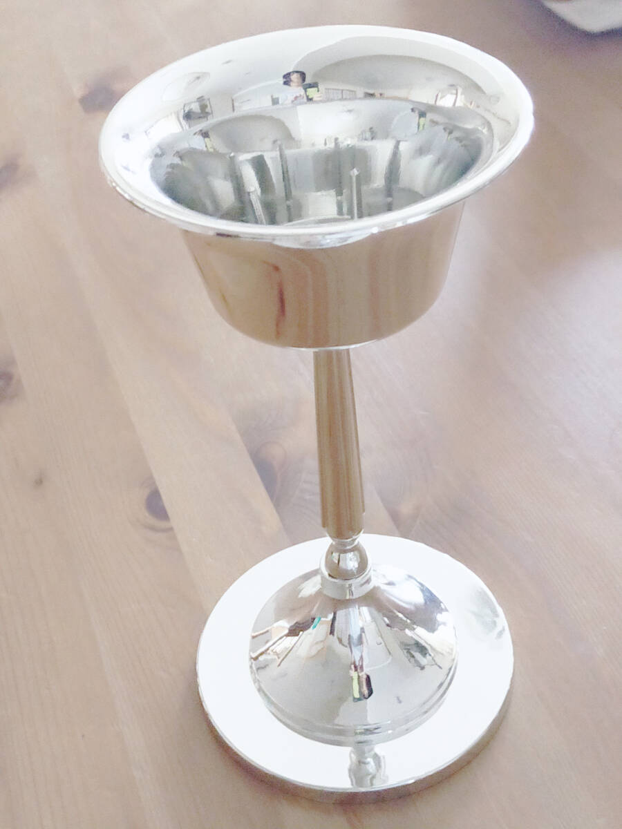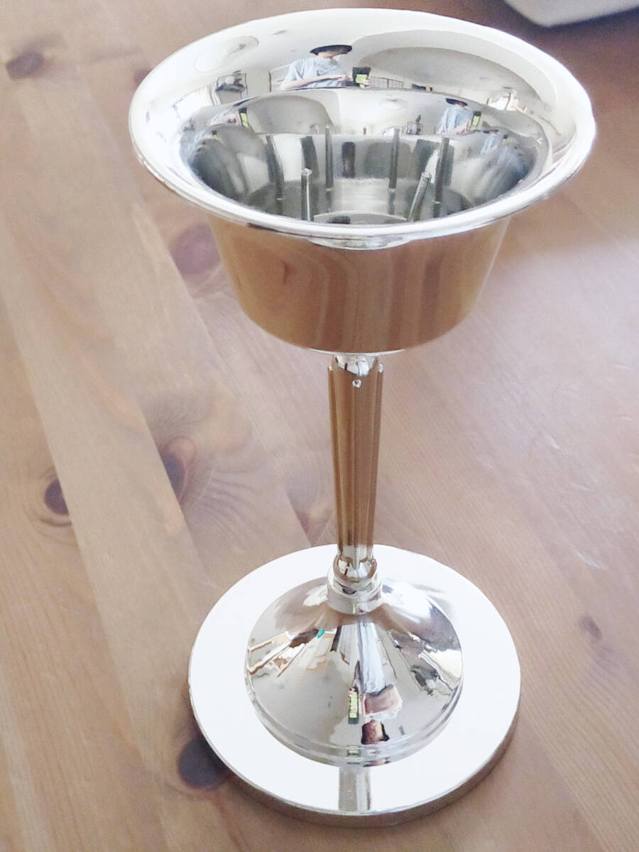 銀色ですが、フェイクです。 組み立て式なので、コンパクトに収納可能です。