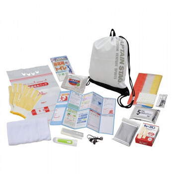 | セット内容 | ナップサック、コンパクトFMラジオ、ハンディライト、非常用給水バッグ3L、非常用トイレ、防災用ウェットティッシュ、防寒シート、ホイッスル、すべり止め手袋、レジャーシート1畳用、レインコート、救急絆創膏2サイズ40枚入、タオル、ポケットティッシュ、防災ガイド |