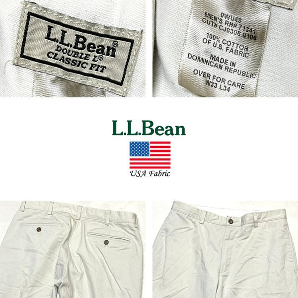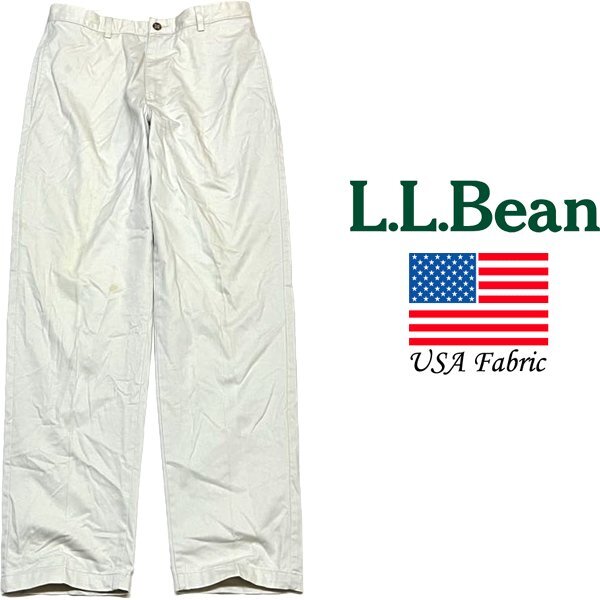 1点物◆USA素材エルエルビーン白チノパン古着33メンズMLレディースOKアメカジ90sストリート/スポーツMixワーク中古スラックスパンツ349334