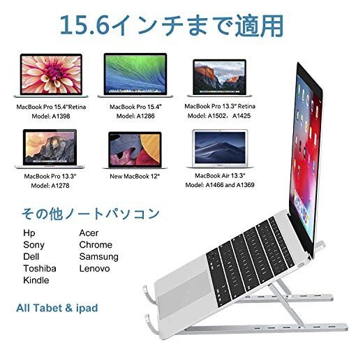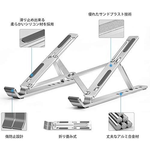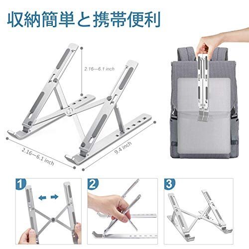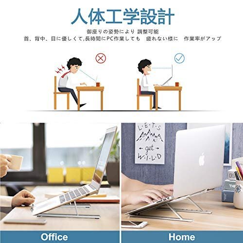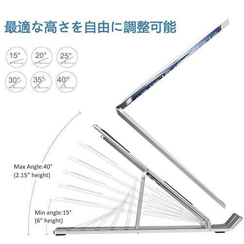 【人間工学設計&6段角度調節可能】iVolerノートパソコンスタンドは人間工学デザインにより、6段角度調整可能を設計しております 15度から40度までを調整出来る為 お好みによってパソコンの高さを調整できる事になります。自然な姿勢で集中して 首の痛みや目の疲れを軽減させることが可能で、作業効率も上がります。