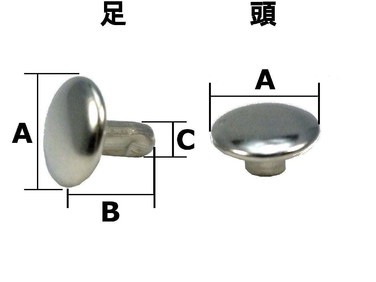 ブランド:イチネンアクセスツール事業部カラー:シルバー説明両面大カシメ(頭径9mm)の足長12.5mmタイプです。取り付けには穴あけ工具(パンチ)と専用取付工具(ハンドプレスと専用駒または専用打ち棒等)が必要です。財布・鞄・ポーチなどの手芸品やハンドメイド製品に。安心の日本製。取付工具はファミリーツール(FAMILYTOOL)打ち棒セット両面カシメ大用(#57607)をご使用ください。別売のハンドプレス(#57500・57501・57502・57503・57504)をお使いの際は、ファミリーツール(FAMILYTOOL)ハンドプレス用駒両面カシメ大用(#57534)を取り付けてご使用ください。材質:鉄+真鍮