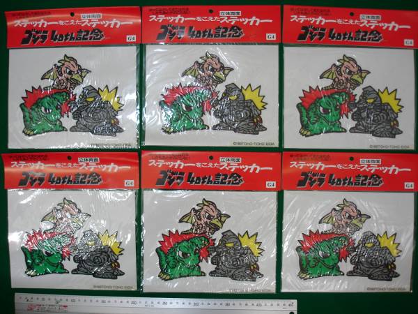 ★【逸品堂】★ 6枚組 ゴジラ40th記念 メカ 立体両面 ステッカー シール G4 新品 shin 昭和レトロアンティーク 珍品 シンゴジラ レリーフ