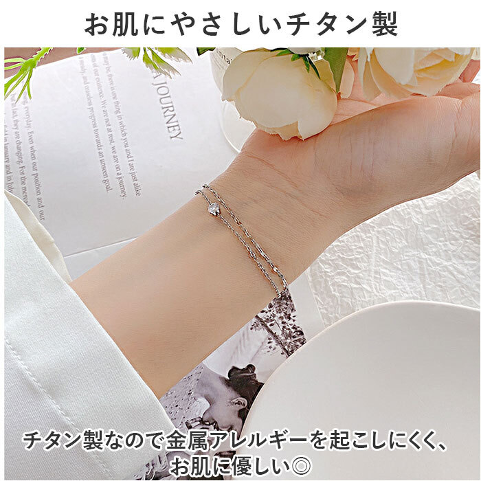 商品説明 | ・・大人シンプルでオンオフ問わず使いやすいブレスレットが発売。 ・【2連チェーンで華奢見え】 ・繊細な2連チェーンが手首を華奢に見せてくれて、着けるだけでこなれ感を演出。 ・【光るストーンがアクセント】 ・中央のさりげなくキラッと光るストーンがアクセント。 ・【お肌にやさしいチタン製】 ・チタン製なので金属アレルギーを起こしにくく、お肌に優しい◎ ・【自分サイズにフィット感の調節】 ・チェーンはアジャスター仕様で、お好みの長さに合わせて調節OK! ・【様々なシーンで活躍】 ・肌馴染みの良いカラーをご用意。シンプルなデザインながらも、手元が華やかな印象に。 |