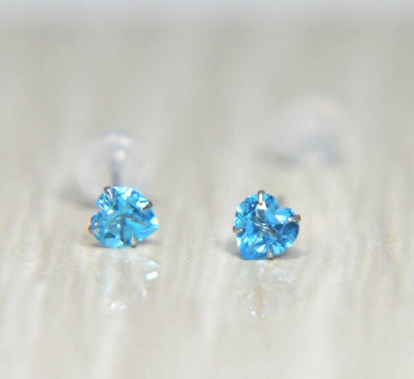 | ◆宝石材質:天然ブルートパーズ(ハートシェイプカット) ◆本体材質:14金ホワイトゴールド(K14WG) ◆サイズ:宝石サイズ=縦横約4mm、ポストの長さ=約10mm |