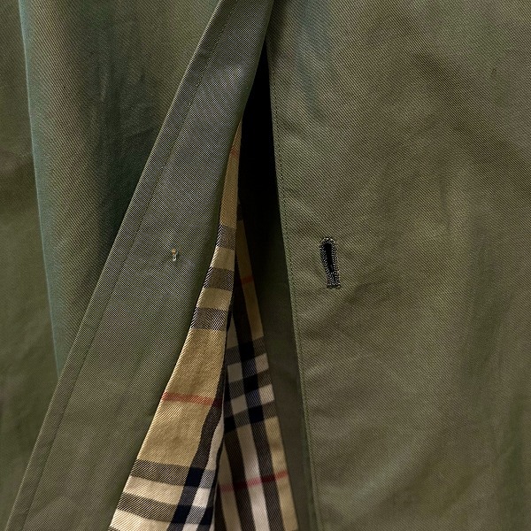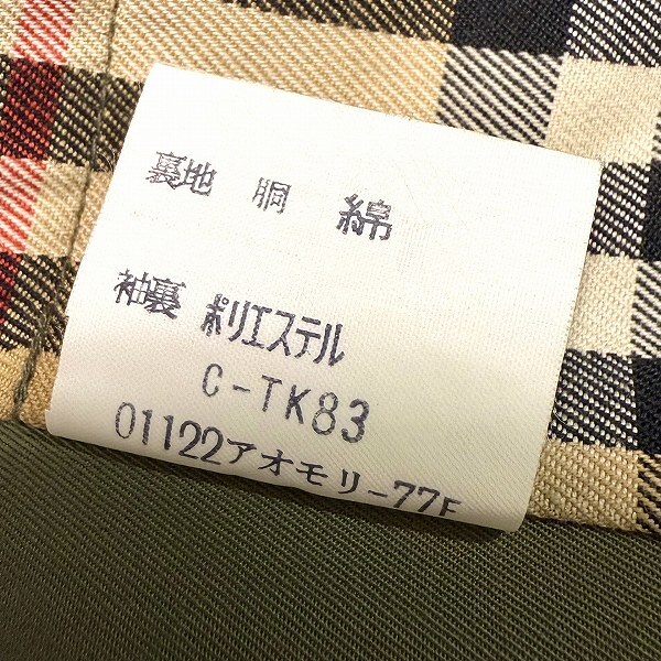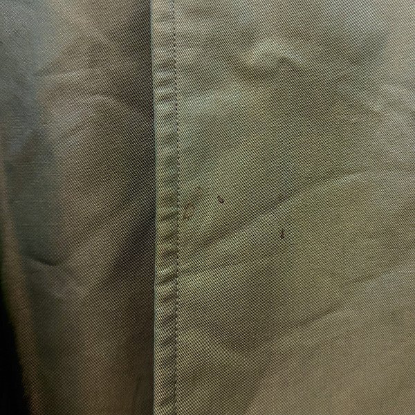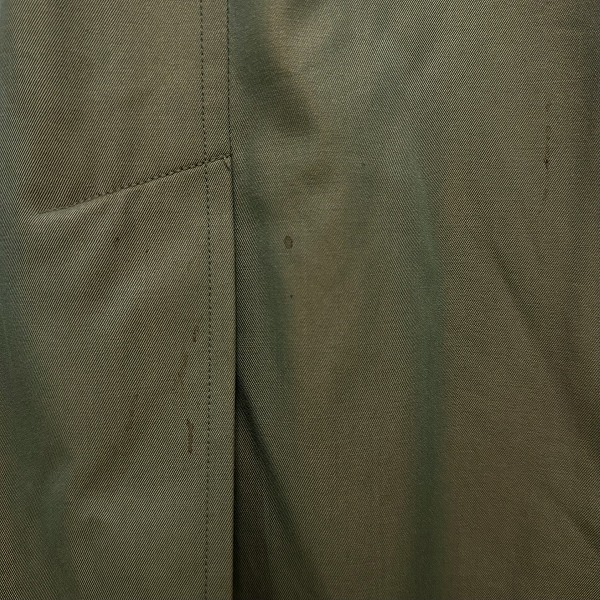 | コンディション備考 | 前身頃と後身頃の中央下付近に汚れがございます。後身頃の裾スリット部分のボタンが取れております。使用感は見受けられますが、まだまだお使いいただけます。またやや保管臭がございます。ご了承下さい。 |