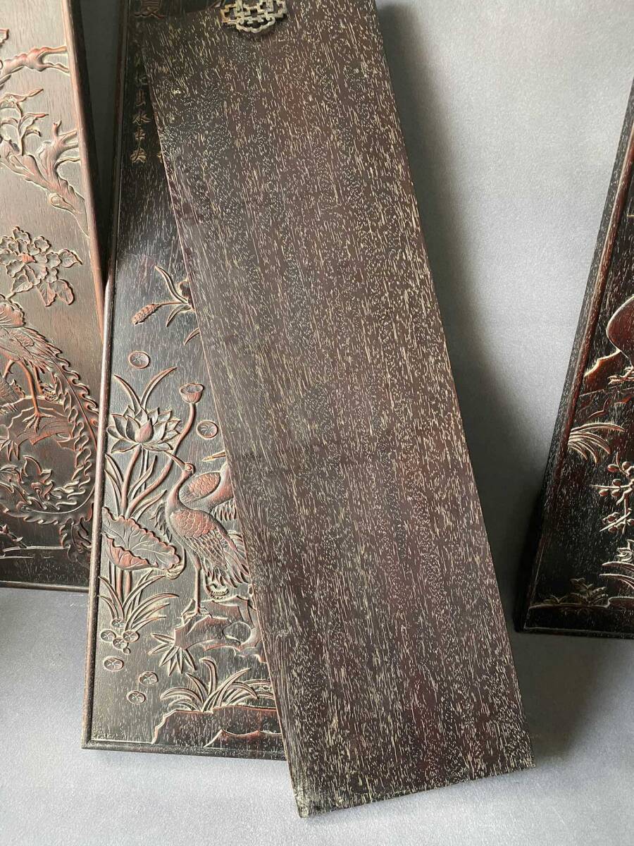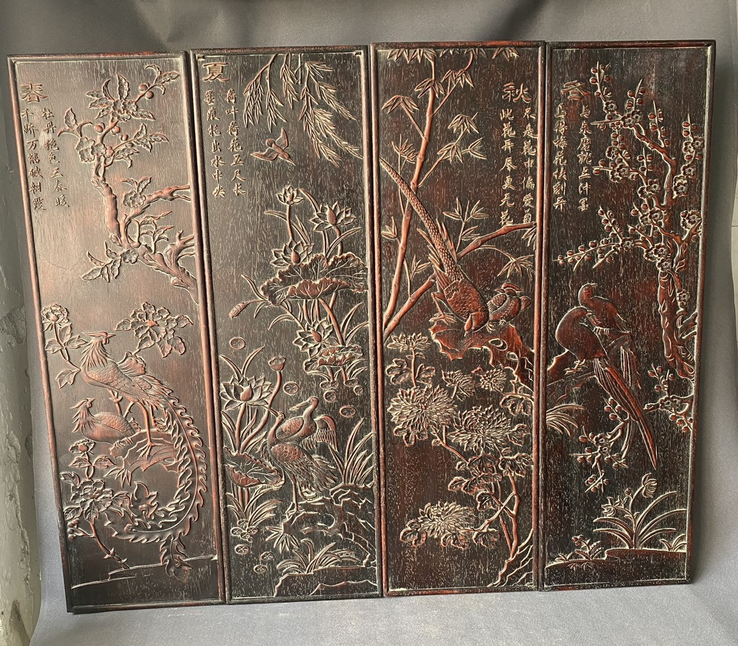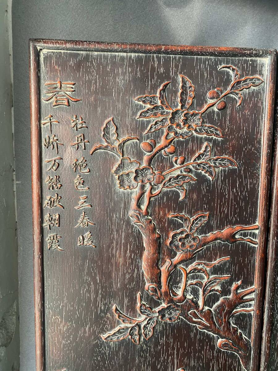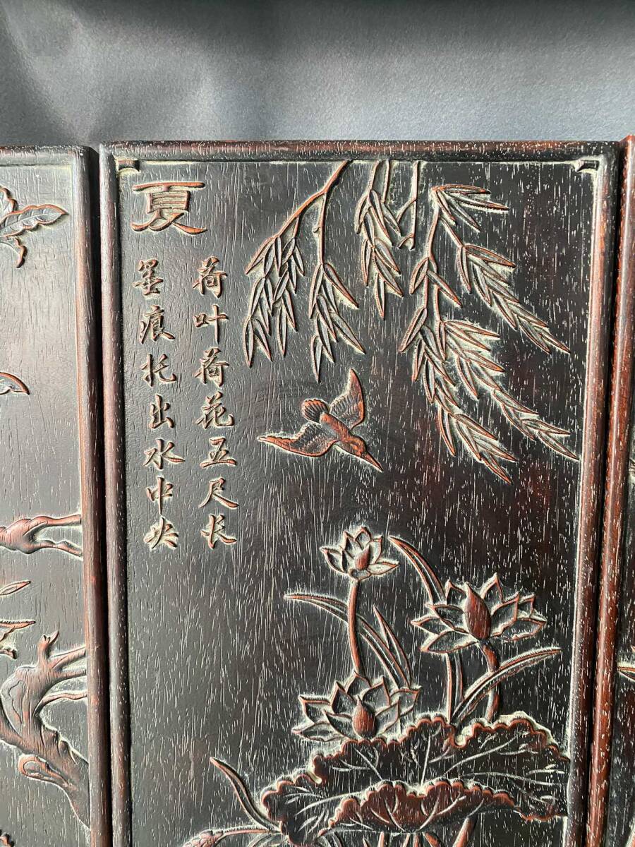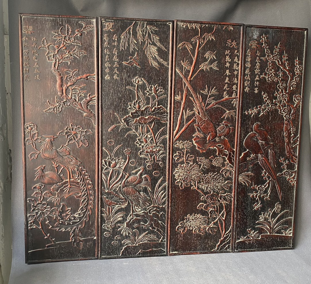 唐物 清 紫檀木 彫刻 春夏秋冬 四條掛屏 木製 極細工 古美術品 時代物 中国古玩 骨董品 D67