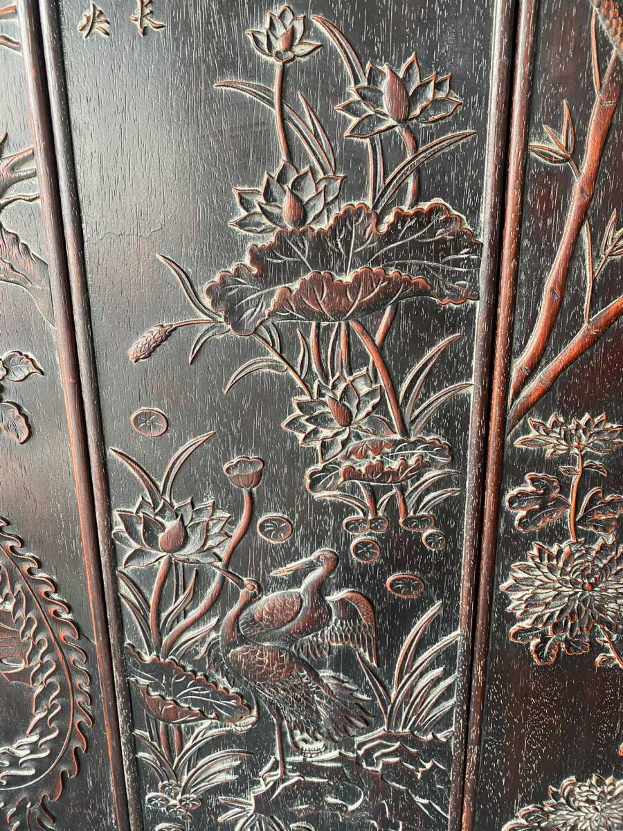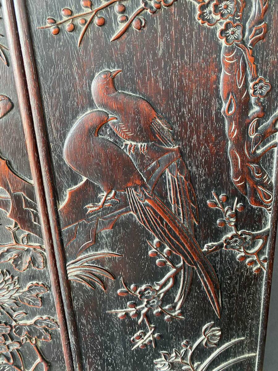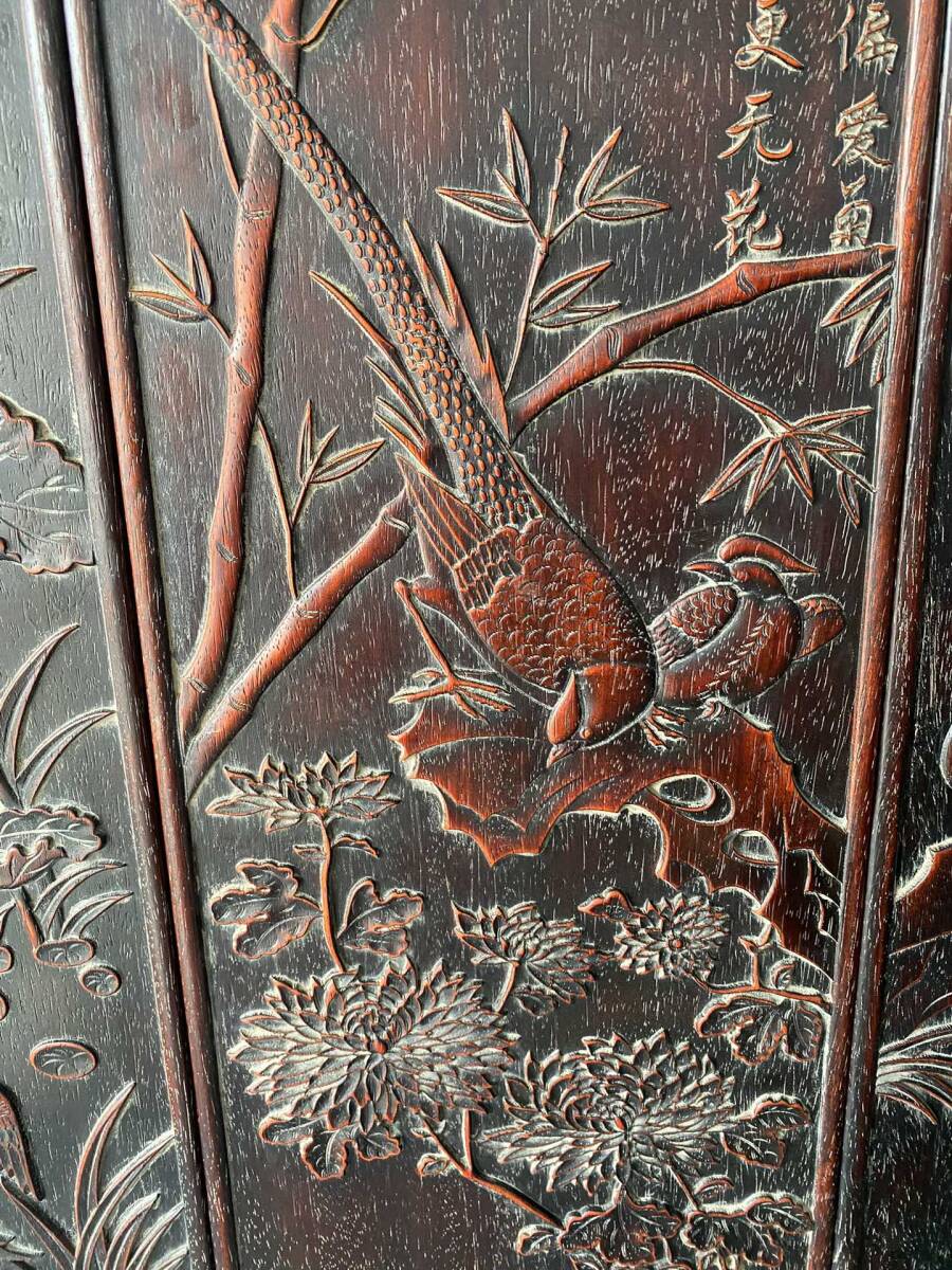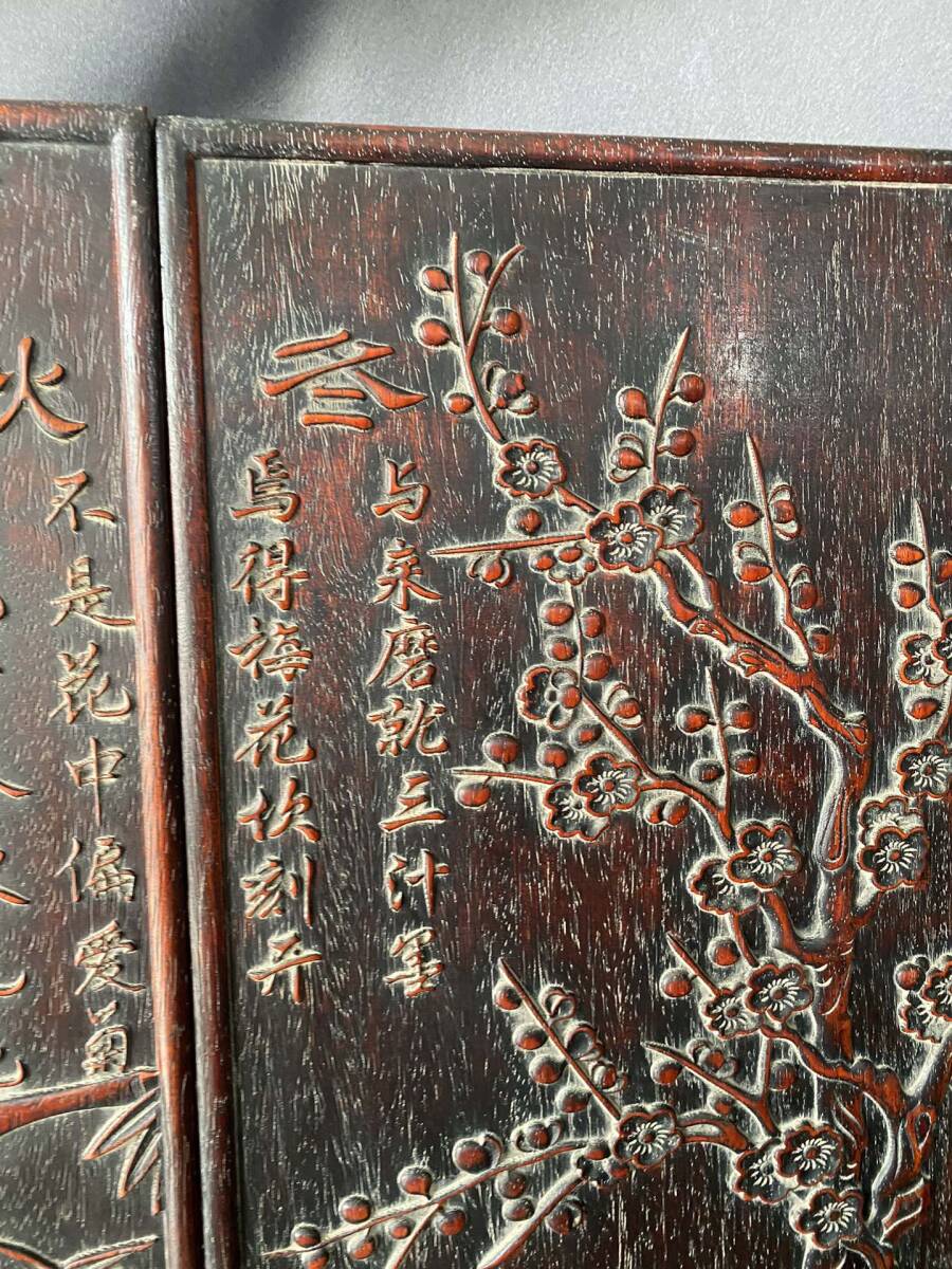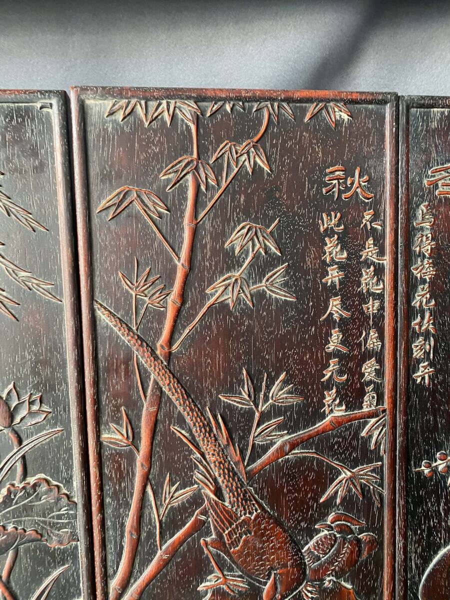 唐物 清 紫檀木 彫刻 春夏秋冬 四條掛屏 木製 極細工 古美術品 時代物 中国古玩 骨董品 D67