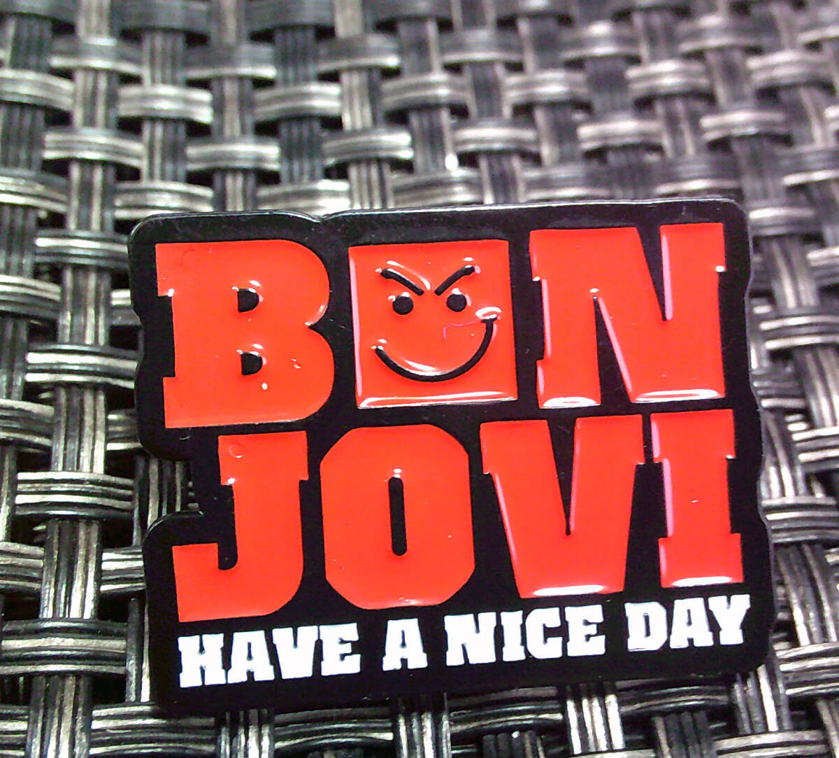 《黒赤BJ萌英語》激渋■新品『BON JOVI 』 ボン・ジョヴィ■ミュージック 音楽 楽器 仲間 ◇激シブ■アメリカ■ ピンバッジ バッチ