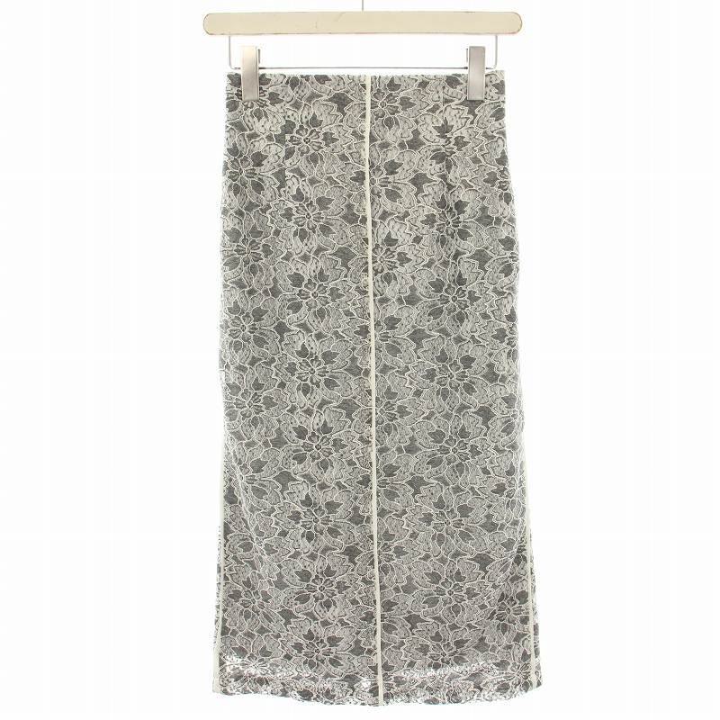 アプワイザーリッシェ Apuweiser-riche 23AW フラワーコードレースタイトスカート ロング ミモレ 0 グレー 白 ホワイト 23432100