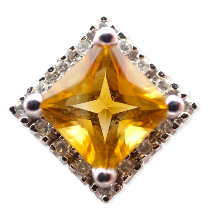 【中古】K14WG シトリン ダイヤモンド ペンダントトップ/j16-21
