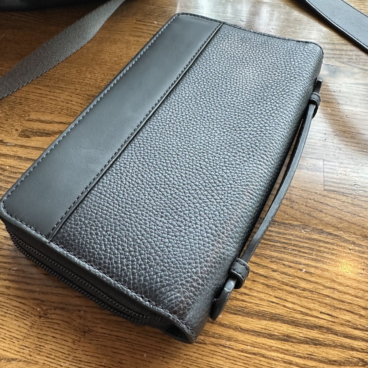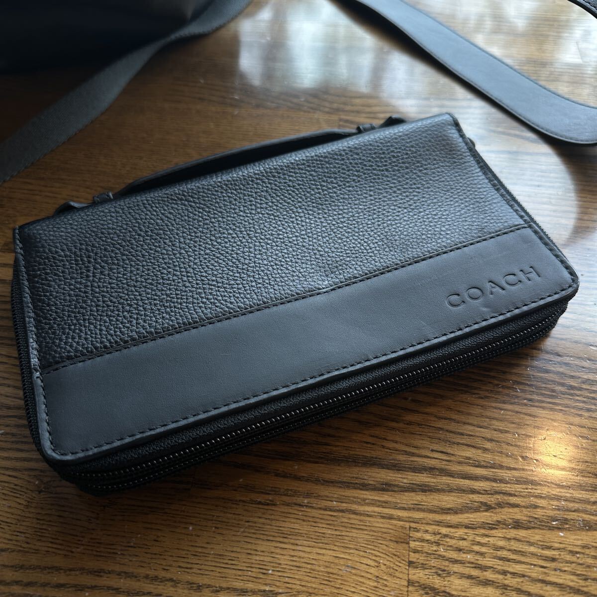 上質なレザーを使用したCOACHのオーガナイザー。シンプルながら高級感のあるデザインで、財布・スマホ・パスポートなどをすっきり収納できます。ビジネスからカジュアルまで幅広く活躍するアイテムです。男性へのギフトにもおすすめです。