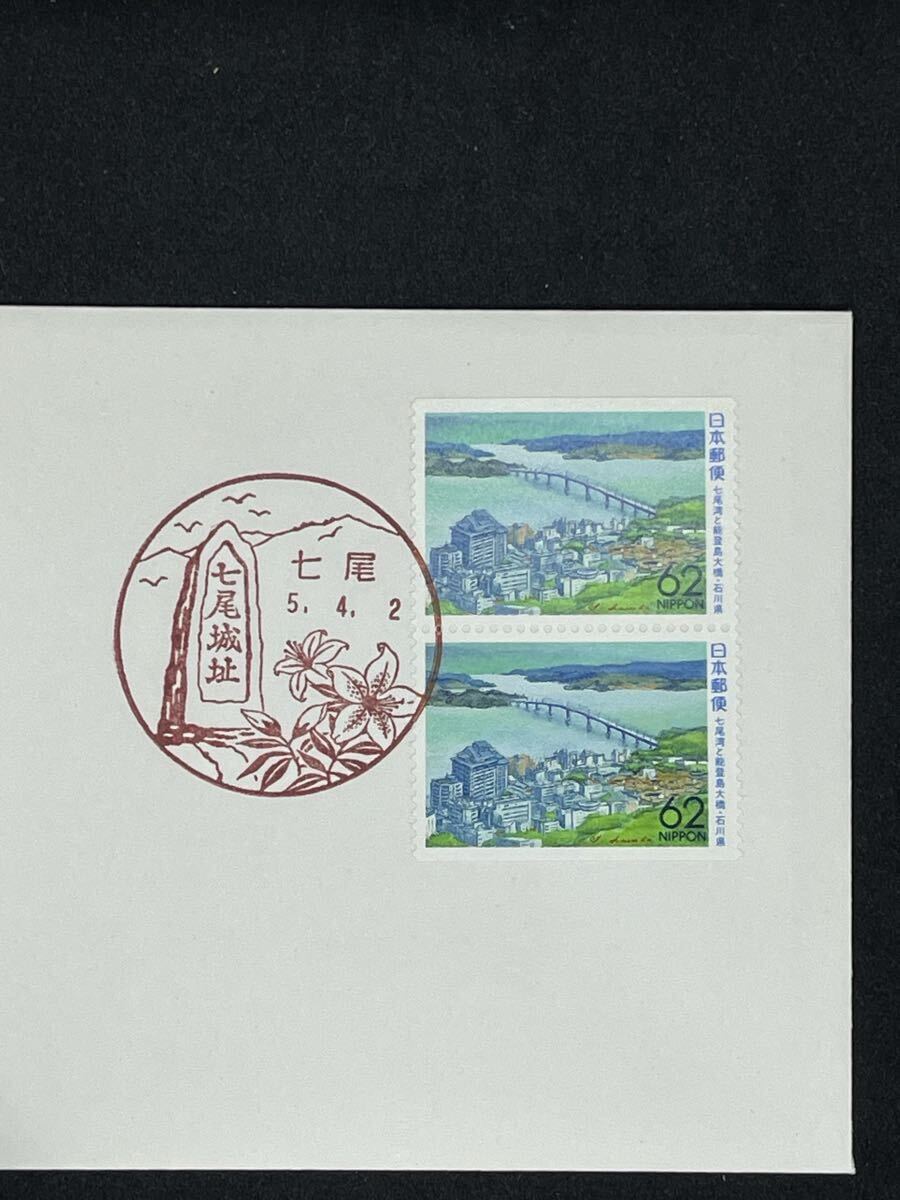 62円の2枚貼り 七尾の風景印の単消し 初日カバー