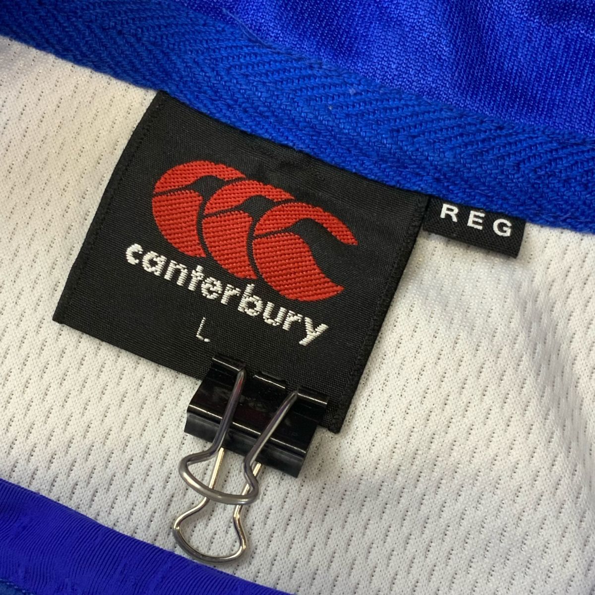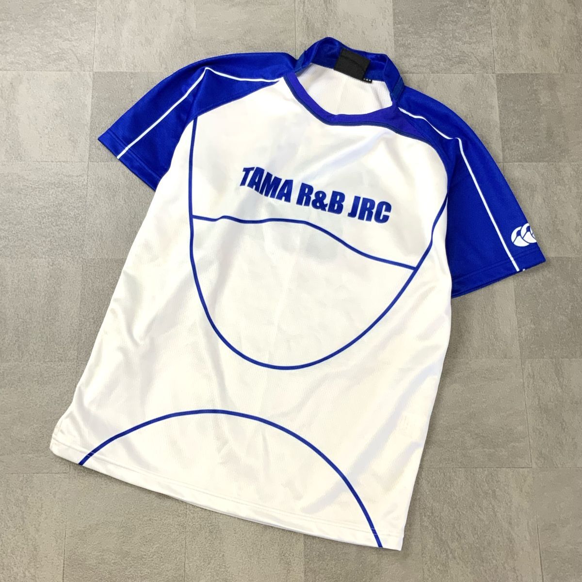 良品 Canterbury カンタベリー TAMA R&B JRC ユニフォームシャツ 半袖シャツ メンズ Lサイズ ホワイト ブルー