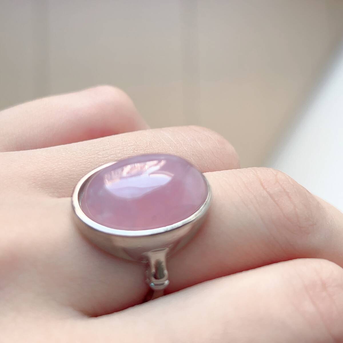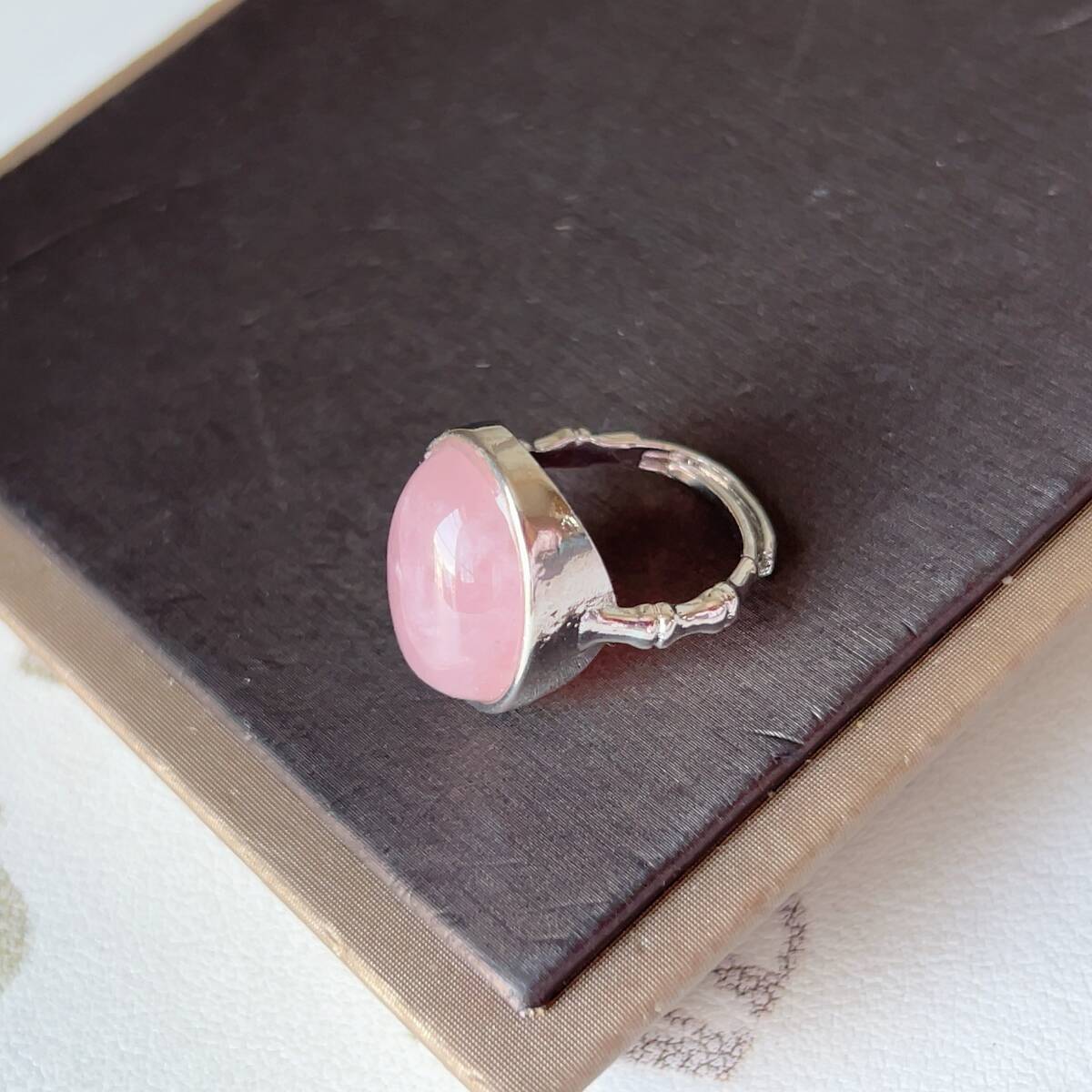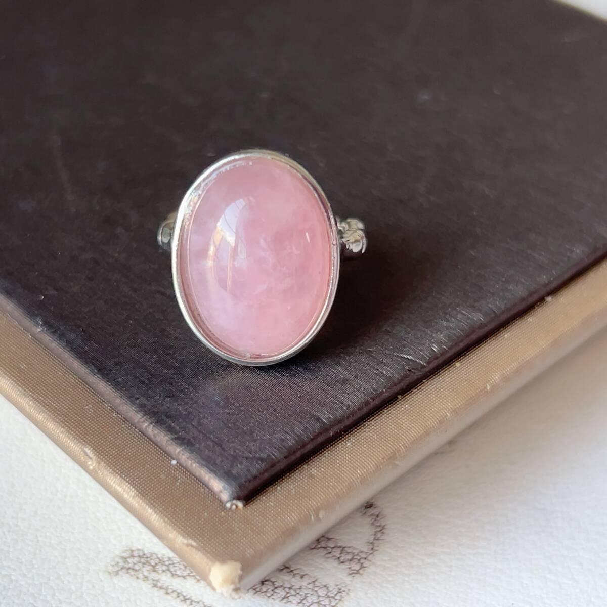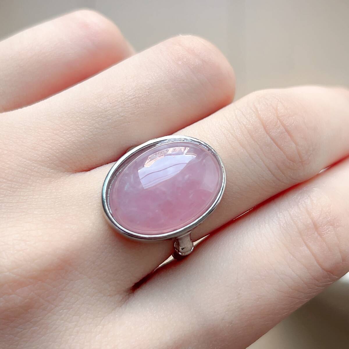 ◇ローズクォーツ(紅水晶)指輪◇リング◇フリーサイズ◇天然石◇パワーストーン◇巾着袋付き◇プレゼントにも 039R7284