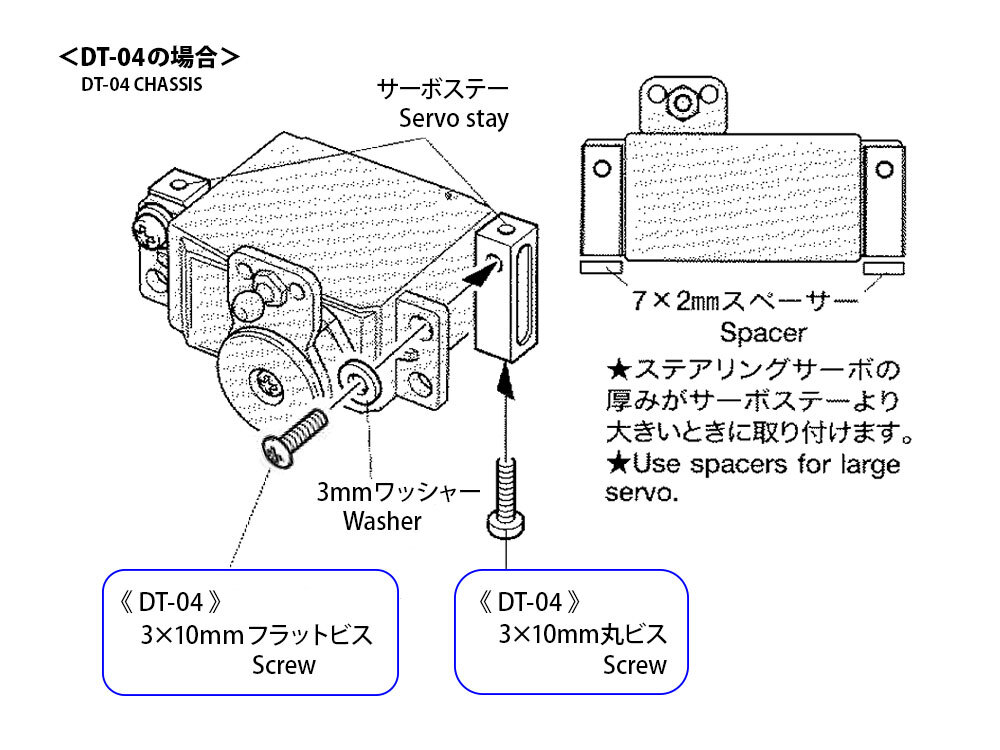 ・スペーサーもセットされ大きめのサーボの取り付けも可能。