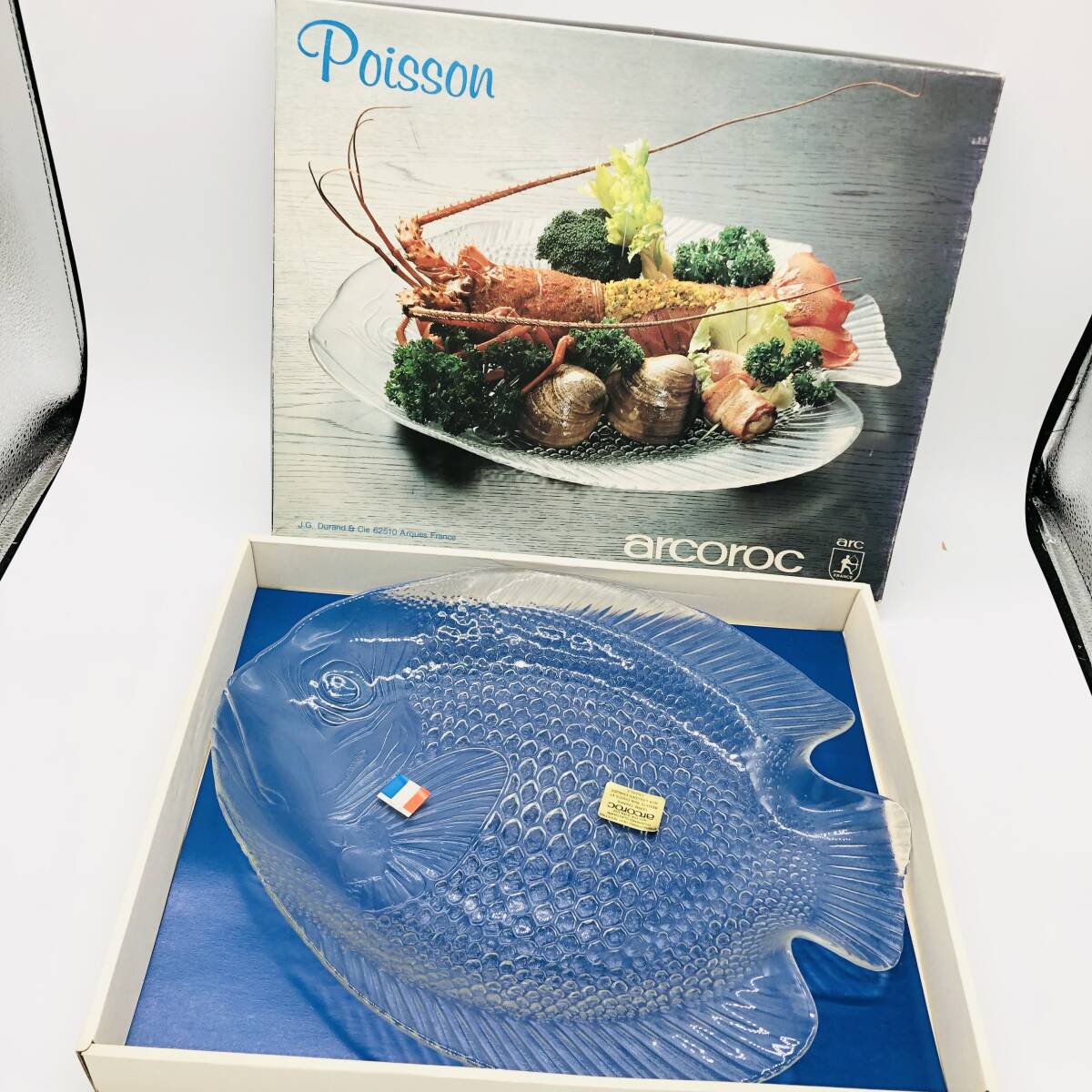 | 保管品 アルコロック arcoroc france Poisson fish dish DU P-1500 魚型 魚 ガラス クリスタルガラス プレート 平皿 大皿 皿 箱付 食器 | ||