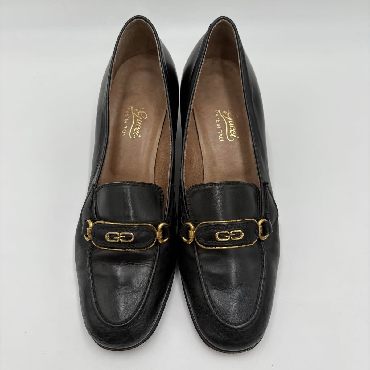 J ■ イタリア製 'ラグジュアリーシューズ' GUCCI グッチ GG 本革 レザー ヒール パンプス シューズ EU35.5 22~22.5cm 高級婦人靴 ブラック