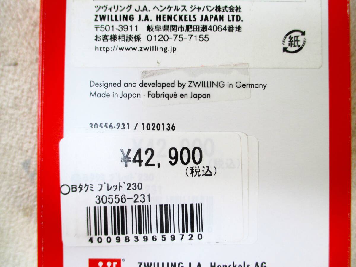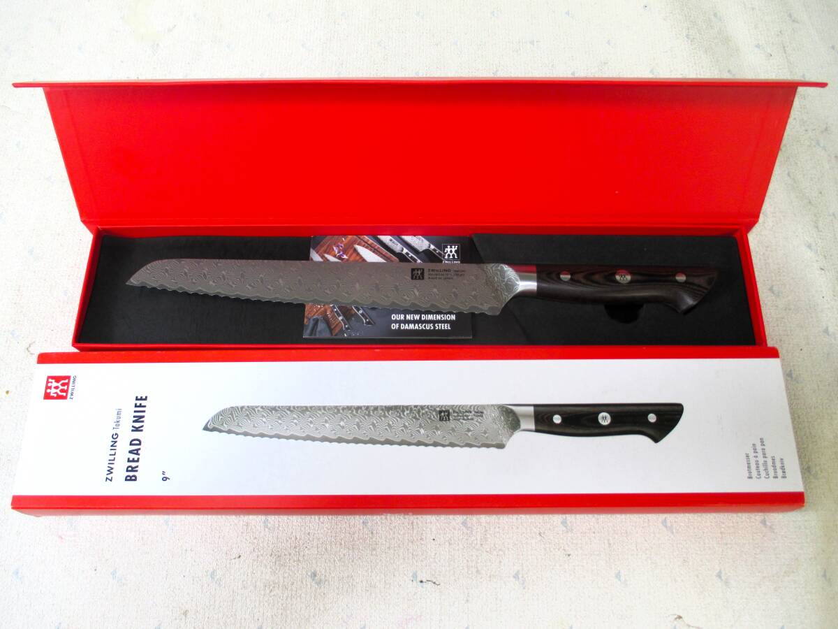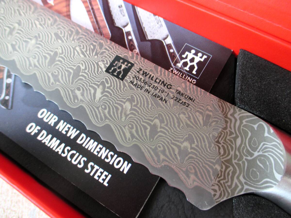 【未使用】ZWILLING Takumi ブレッドナイフ 23㎝ 230㎜ ダマスカス 包丁 バーターナイフ パン切ナイフ 多層鋼 特殊ステンレス鋼 日本製 (5956)