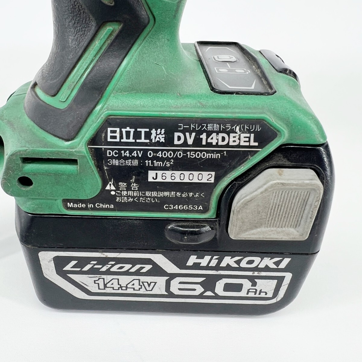 〇〇 HITACHI 日立 ドライバドリル 充電池1個付 コードレス式 14.4v 6.0Ah DV14DBEL グリーン 傷や汚れあり