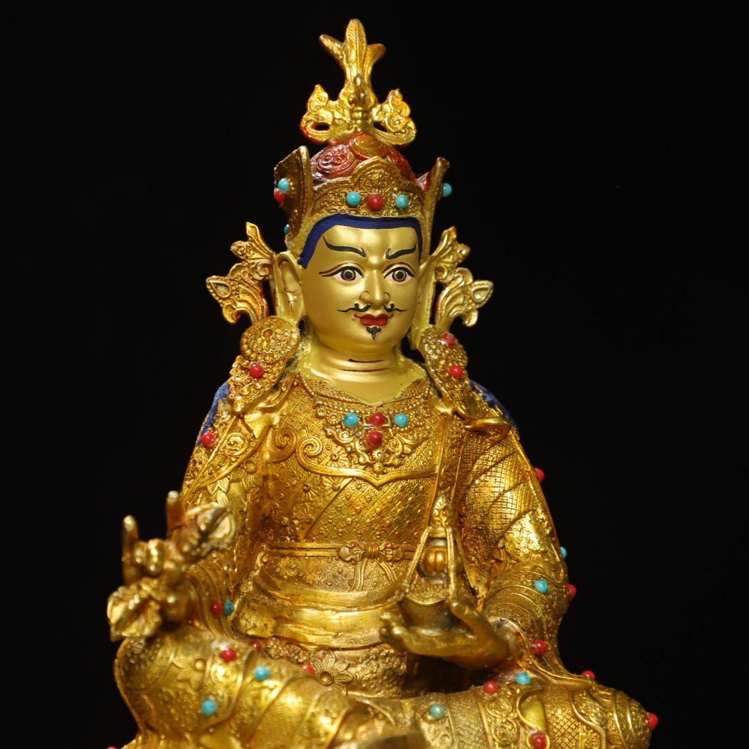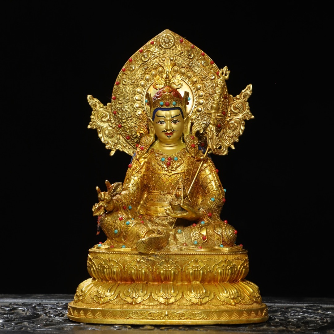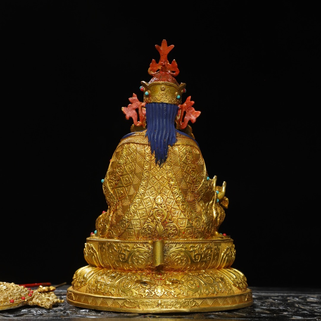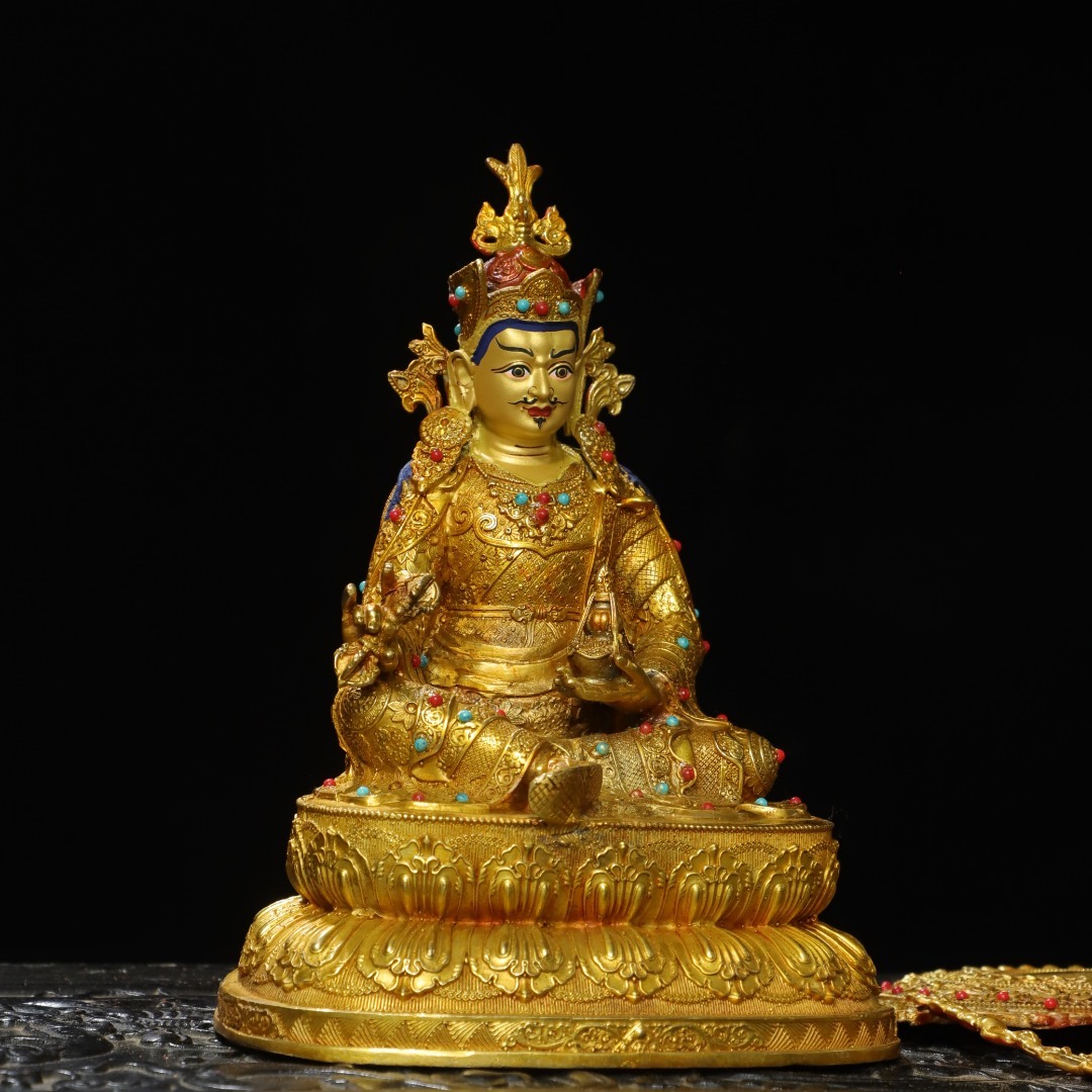 唐物 清 銅塗金画彩【蓮の花生】仏像 奉納されていた 供養品 銅製 古美術品 時代物 中国古玩 骨董品 D67