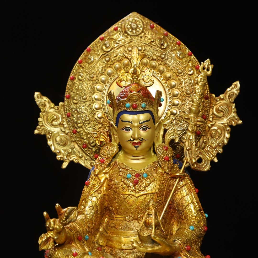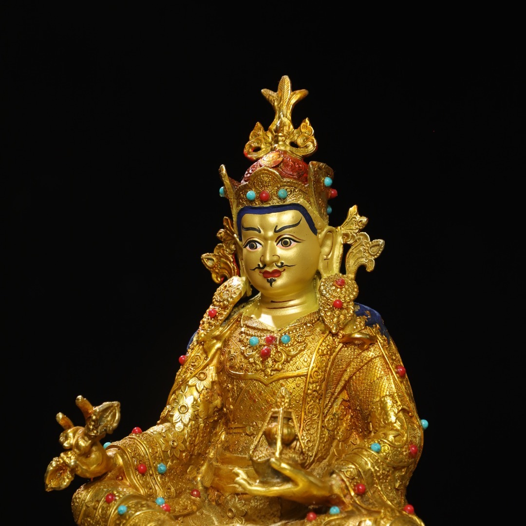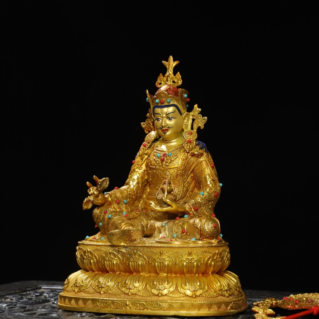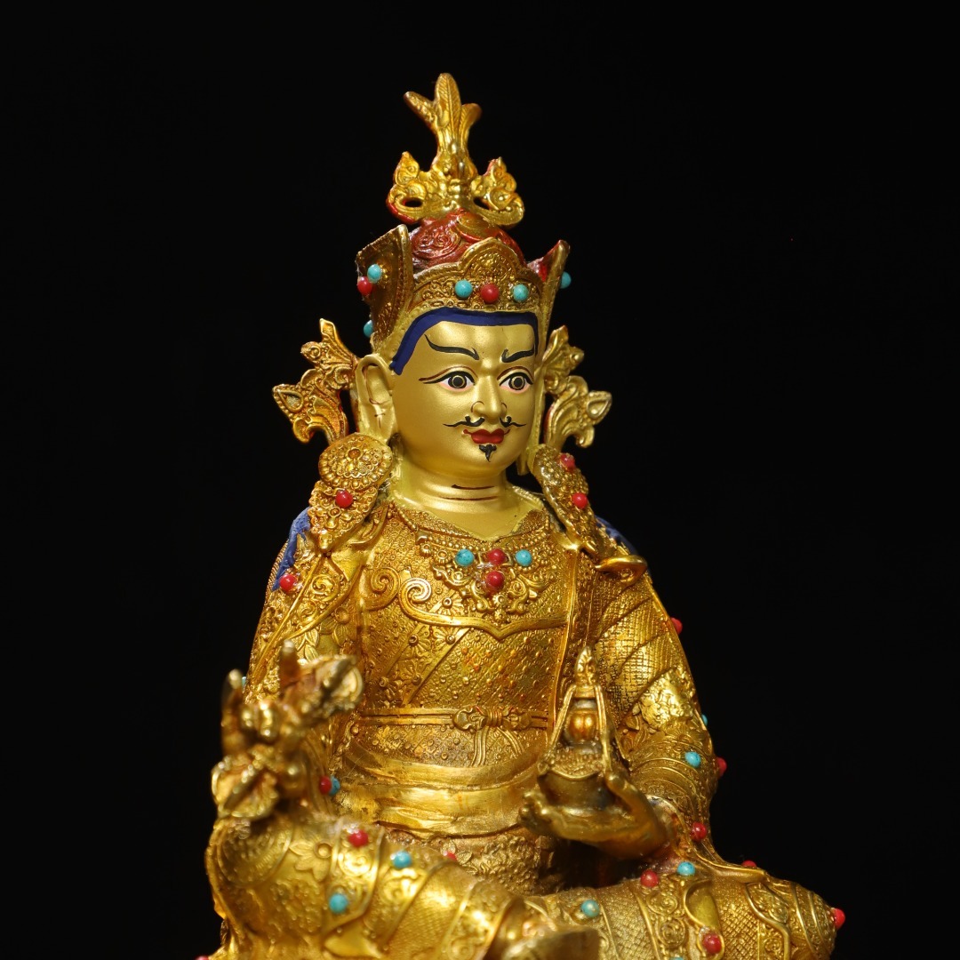 唐物 清 銅塗金画彩【蓮の花生】仏像 奉納されていた 供養品 銅製 古美術品 時代物 中国古玩 骨董品 D67