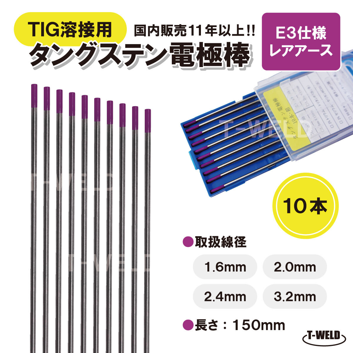 TIG溶接用 タングステン電極棒 ビンツェル「E3」適合×2.4mm 10本単価 「溶接消耗品プロ店」