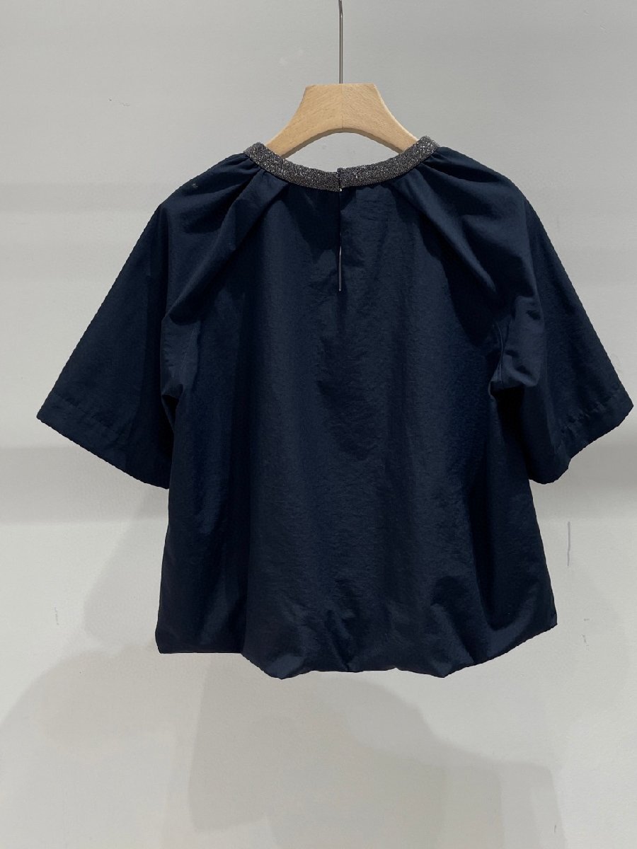 Brunello cucinelli ブルネロクチネリ レディース 2025s 丸首 スパンコールシャツ トップス綿 紺 S-Lサイズ